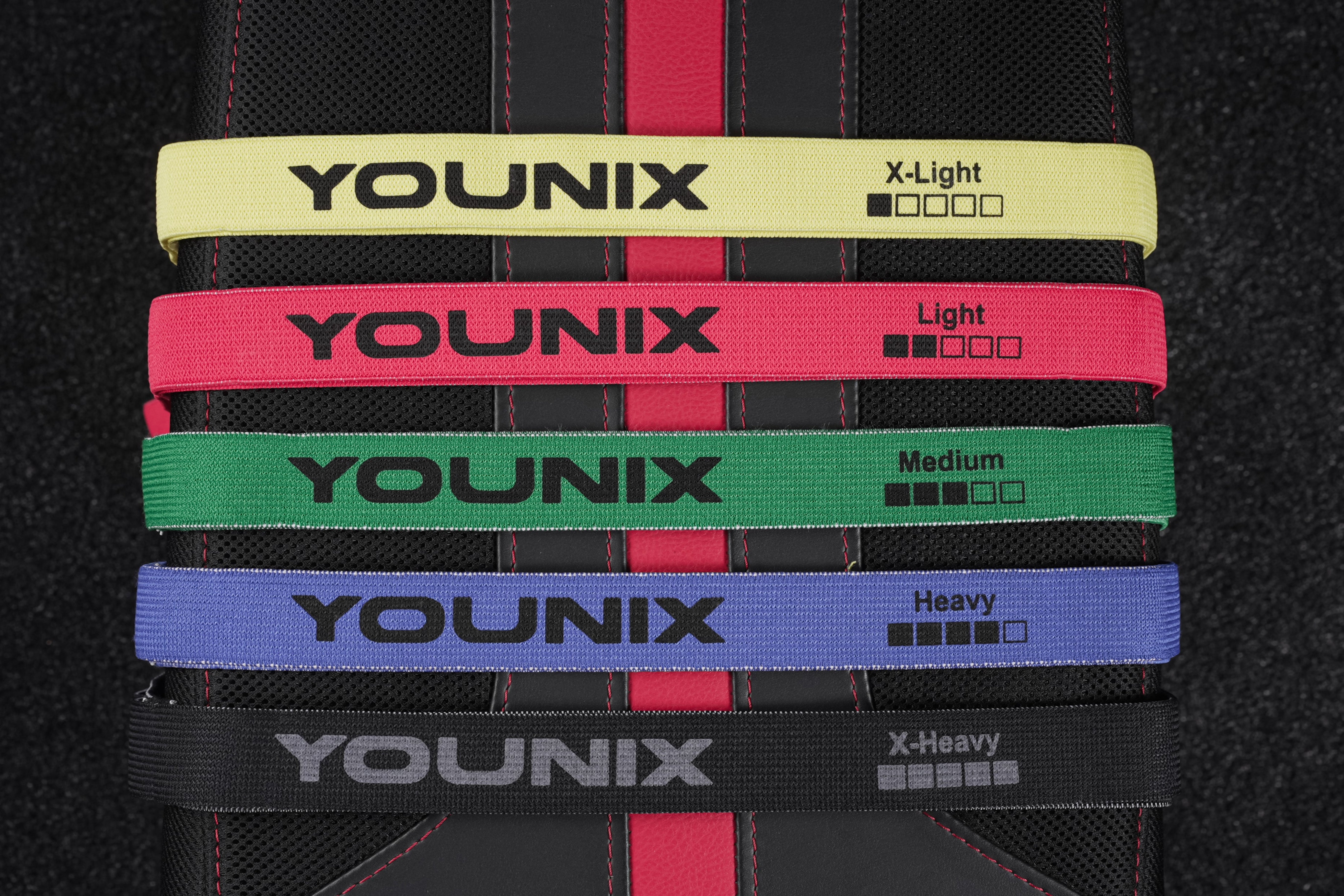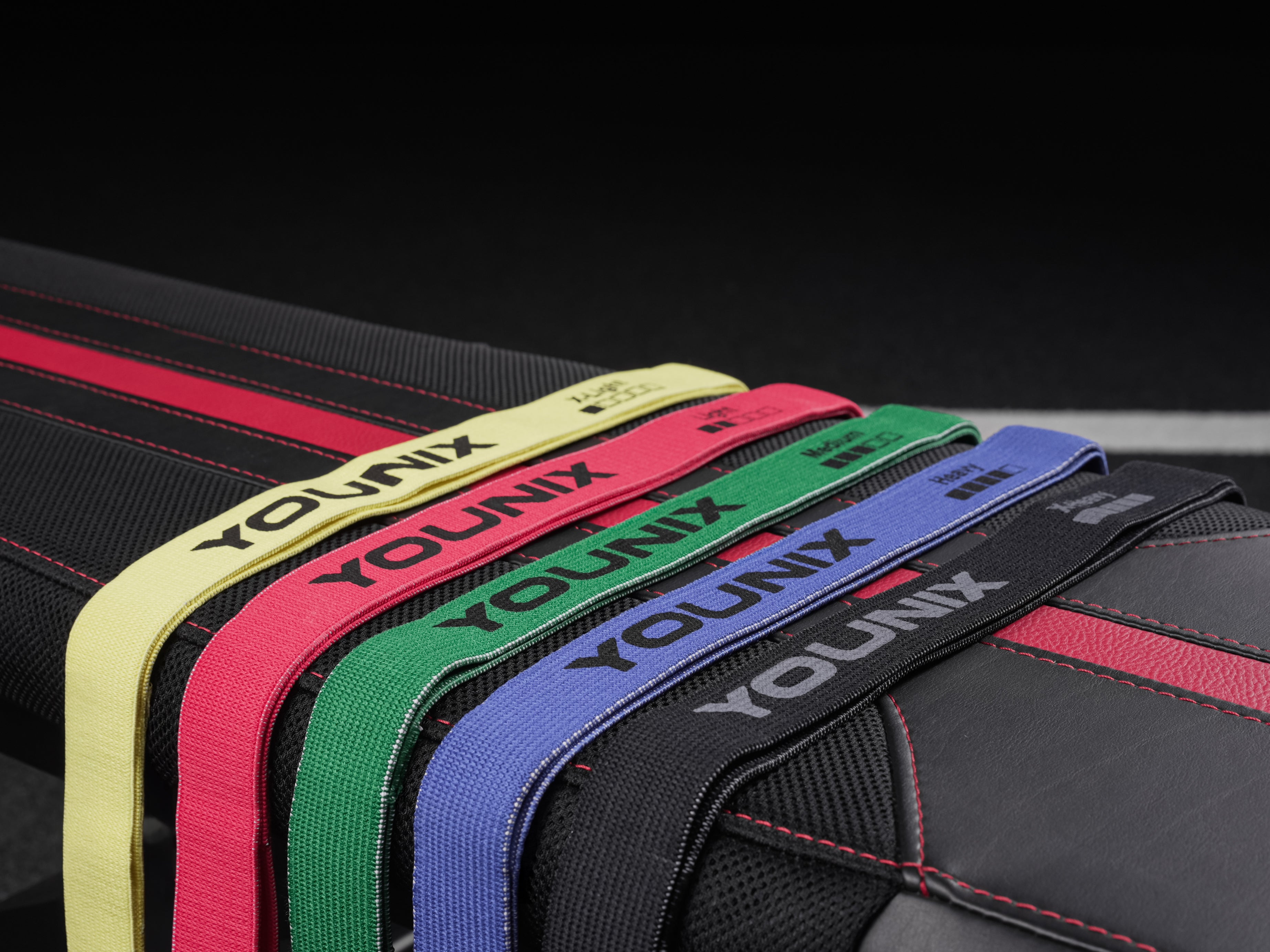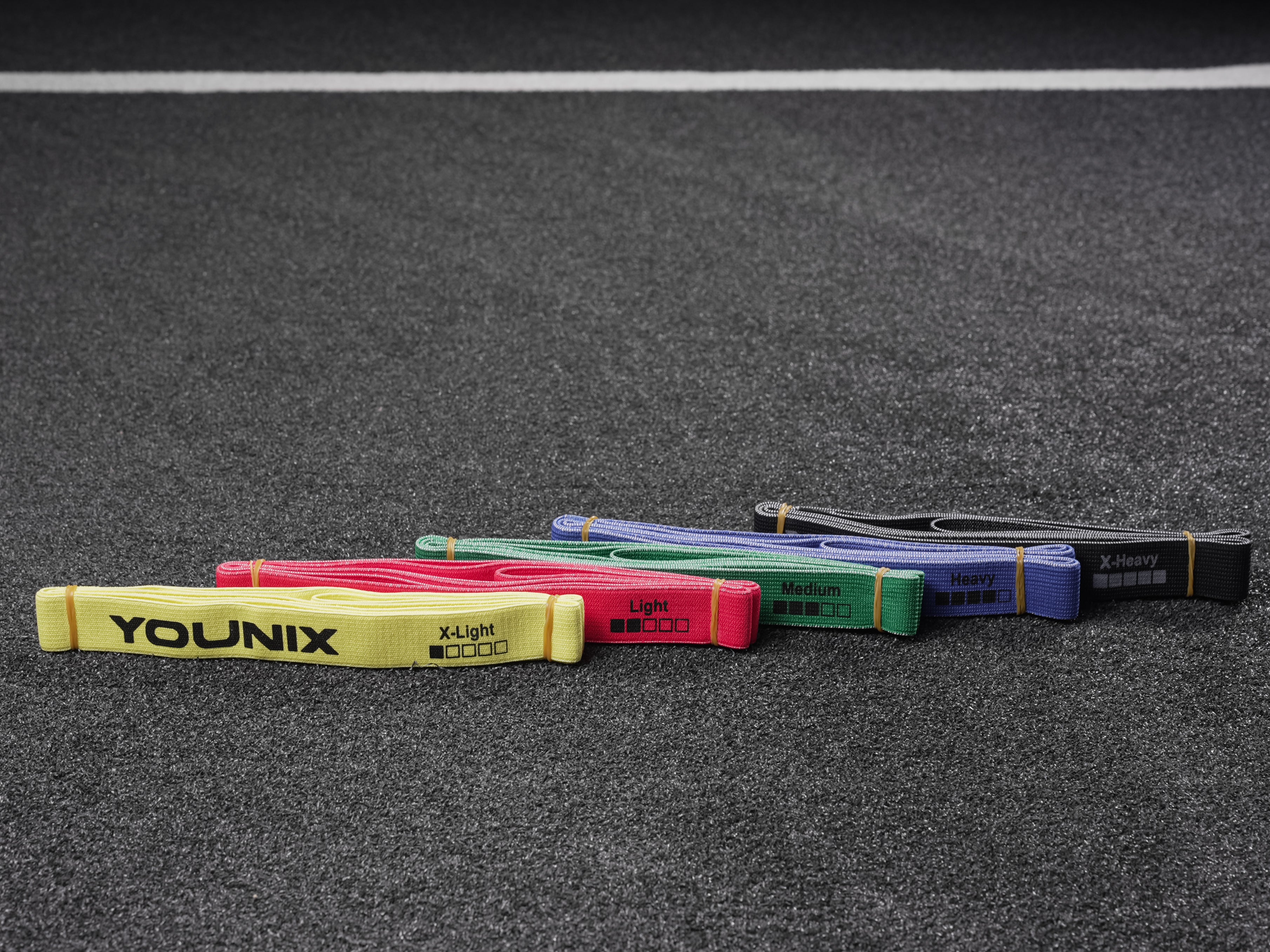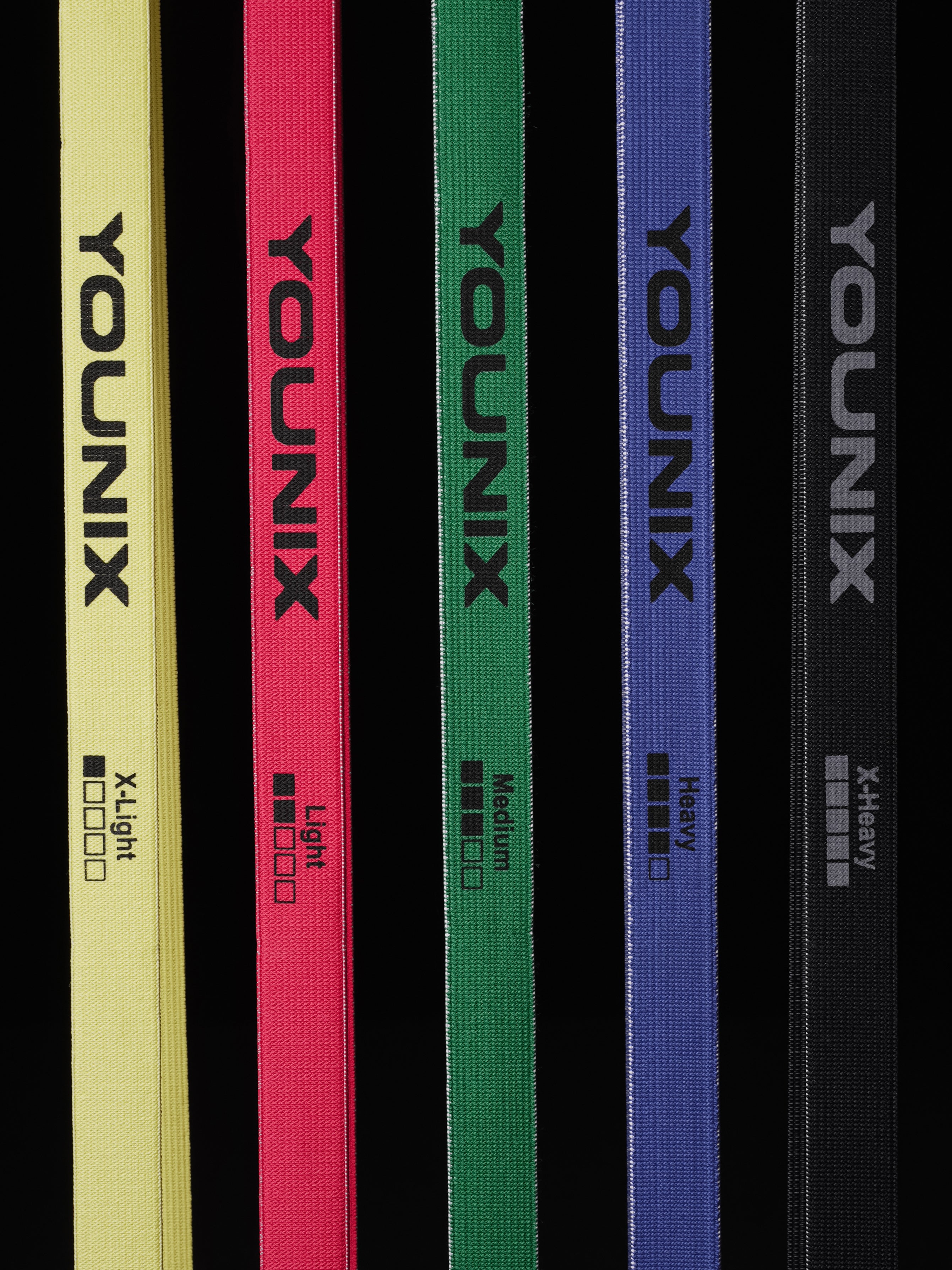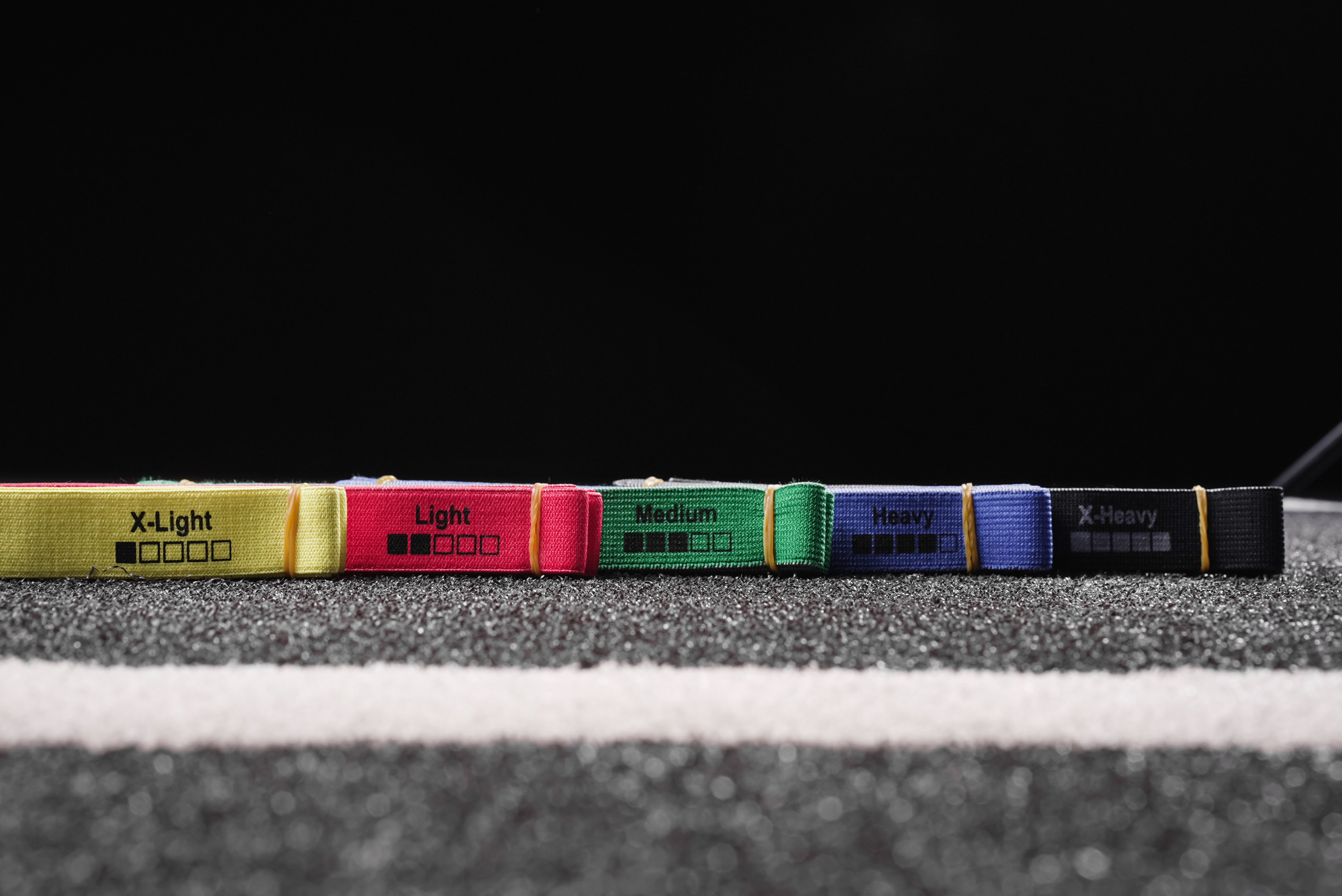 You can choose from 5 colour coded bands made out of natural latex rubber. Each band is 104 cm long and 5 mm thick but varying in width and resistance. Lighter bands are used for pre-habitation, rehabilitation, mobility, speed, agility and easy weight training. Stronger bands are used for mobility, assistance, banded squats, deadlifts and bench press. Our highest resistance bands are used for maximum resistance for advanced athletes.