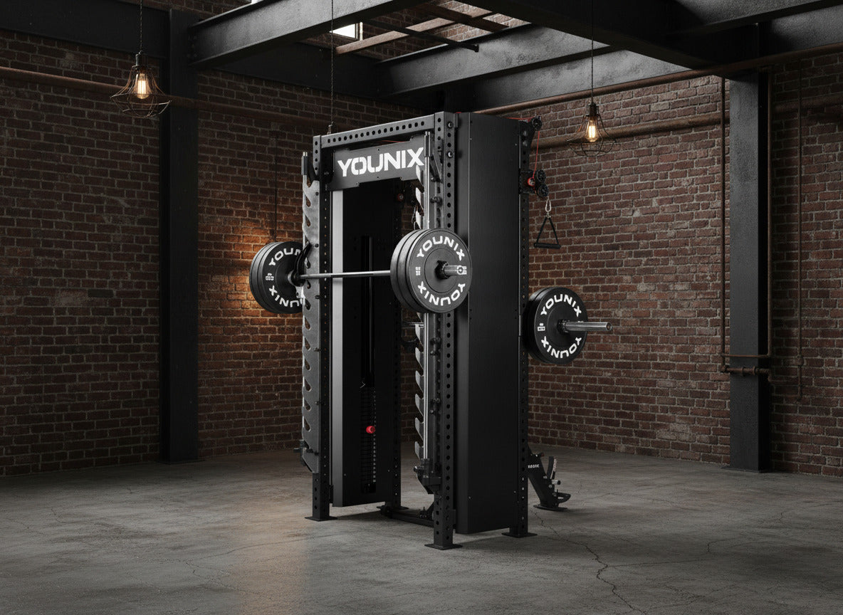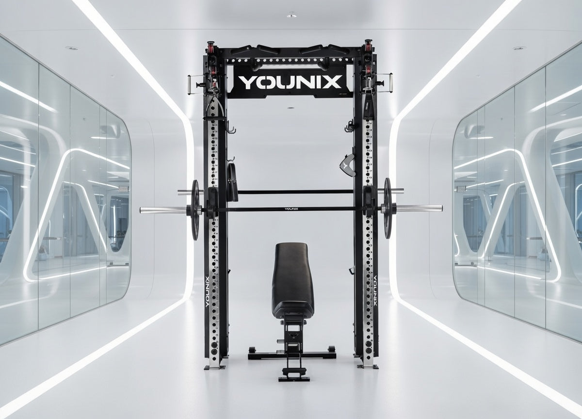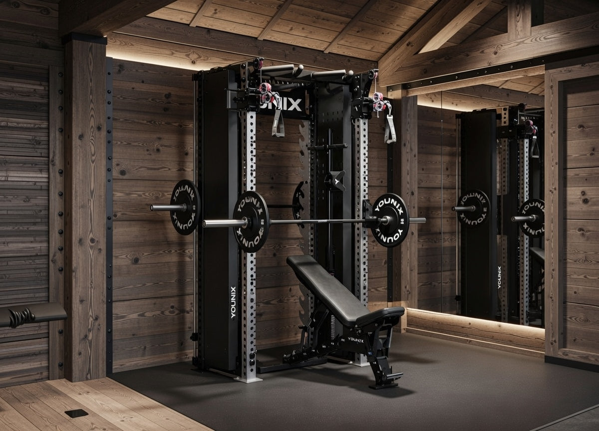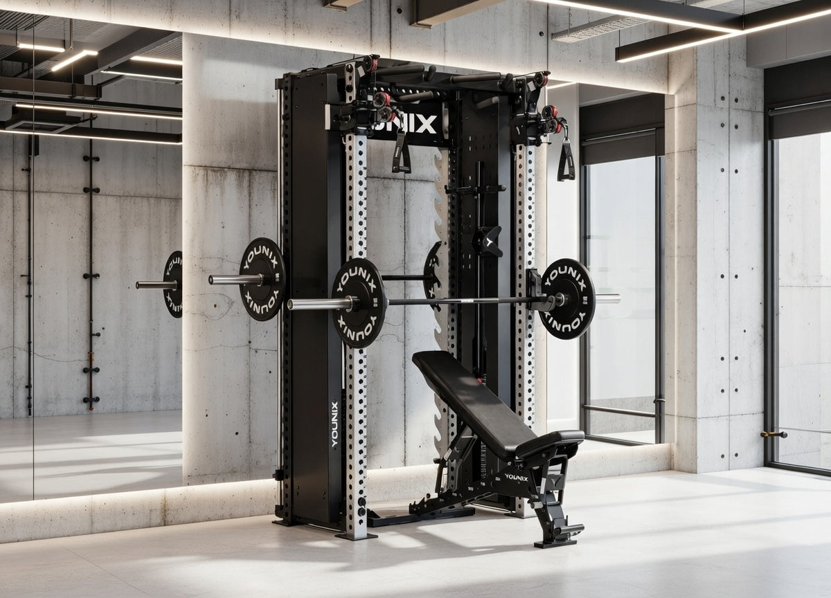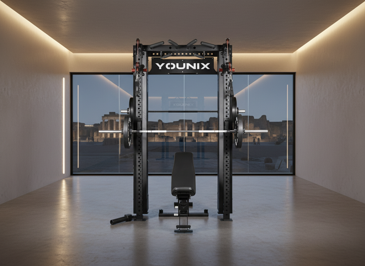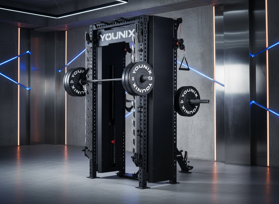 Over 350 exercises in one compact powerhouse. Dual adjustable pulleys and integrated Smith Machine let you train strength, control, and precision with unmatched safety. Stainless-steel uprights, smooth motion, and modular design — an entire professional gym, engineered into a single elegant system.