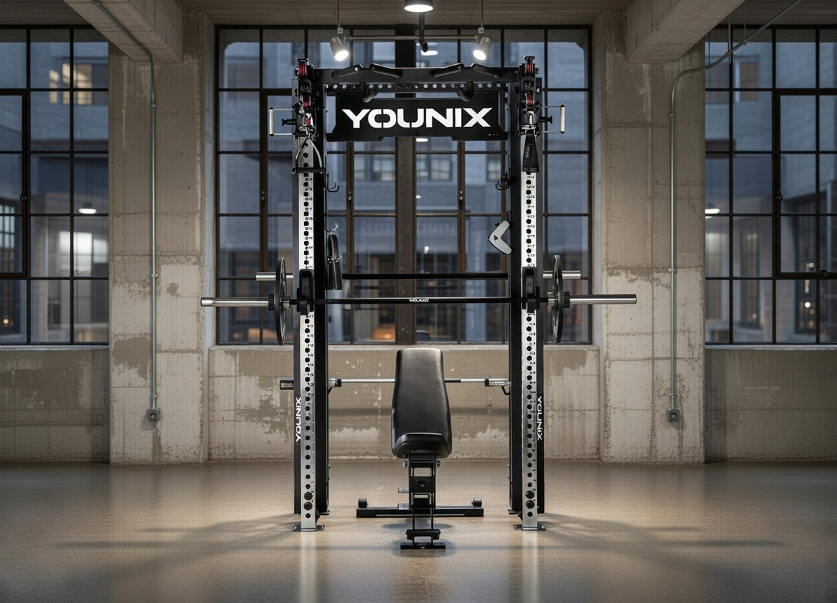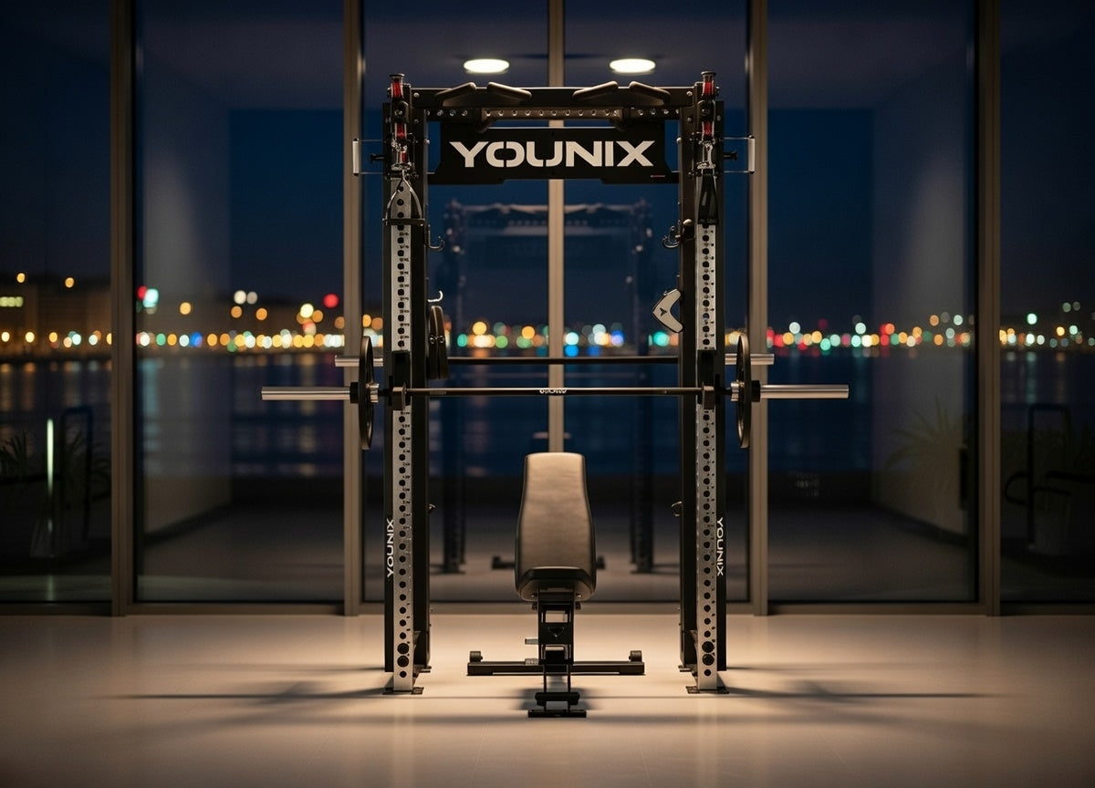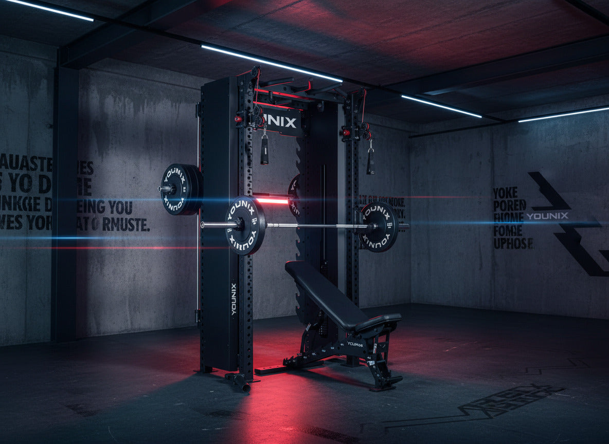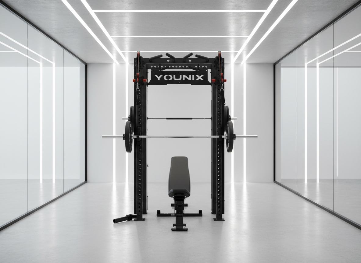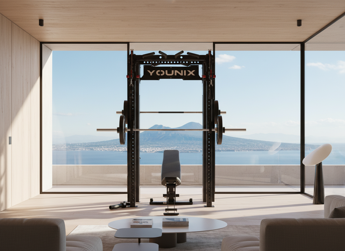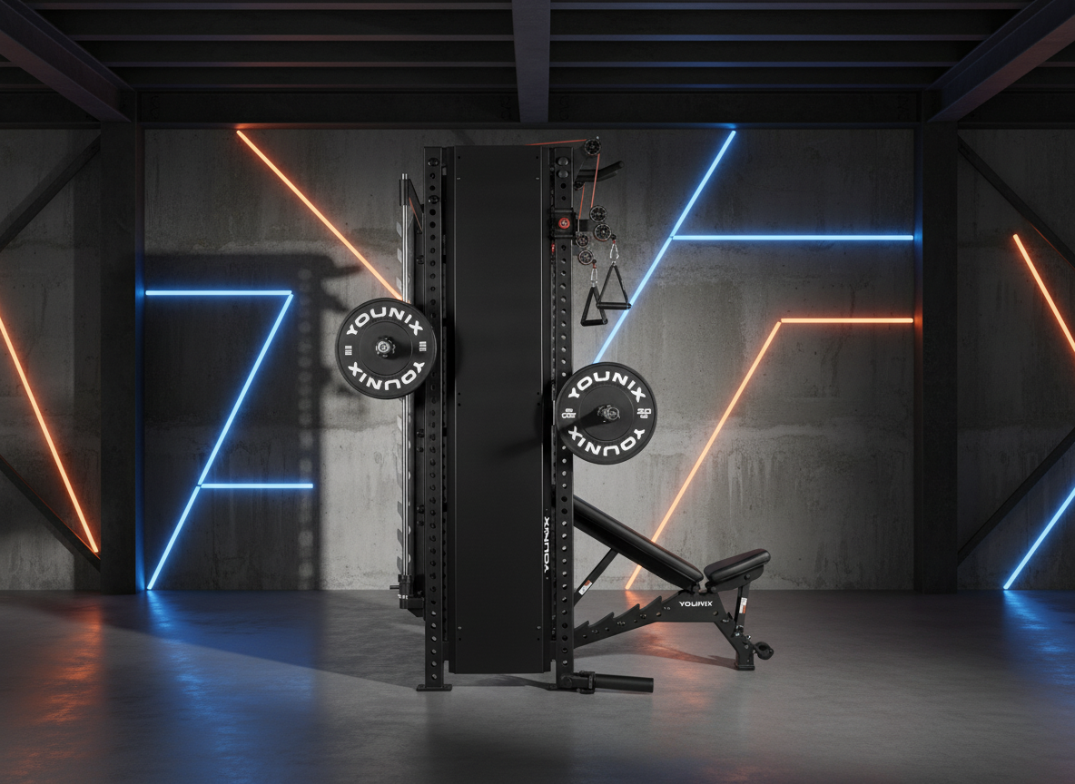 Over 350 exercises in one compact powerhouse. Dual adjustable pulleys and integrated Smith Machine let you train strength, control, and precision with unmatched safety. Stainless-steel uprights, smooth motion, and modular design — an entire professional gym, engineered into a single elegant system.