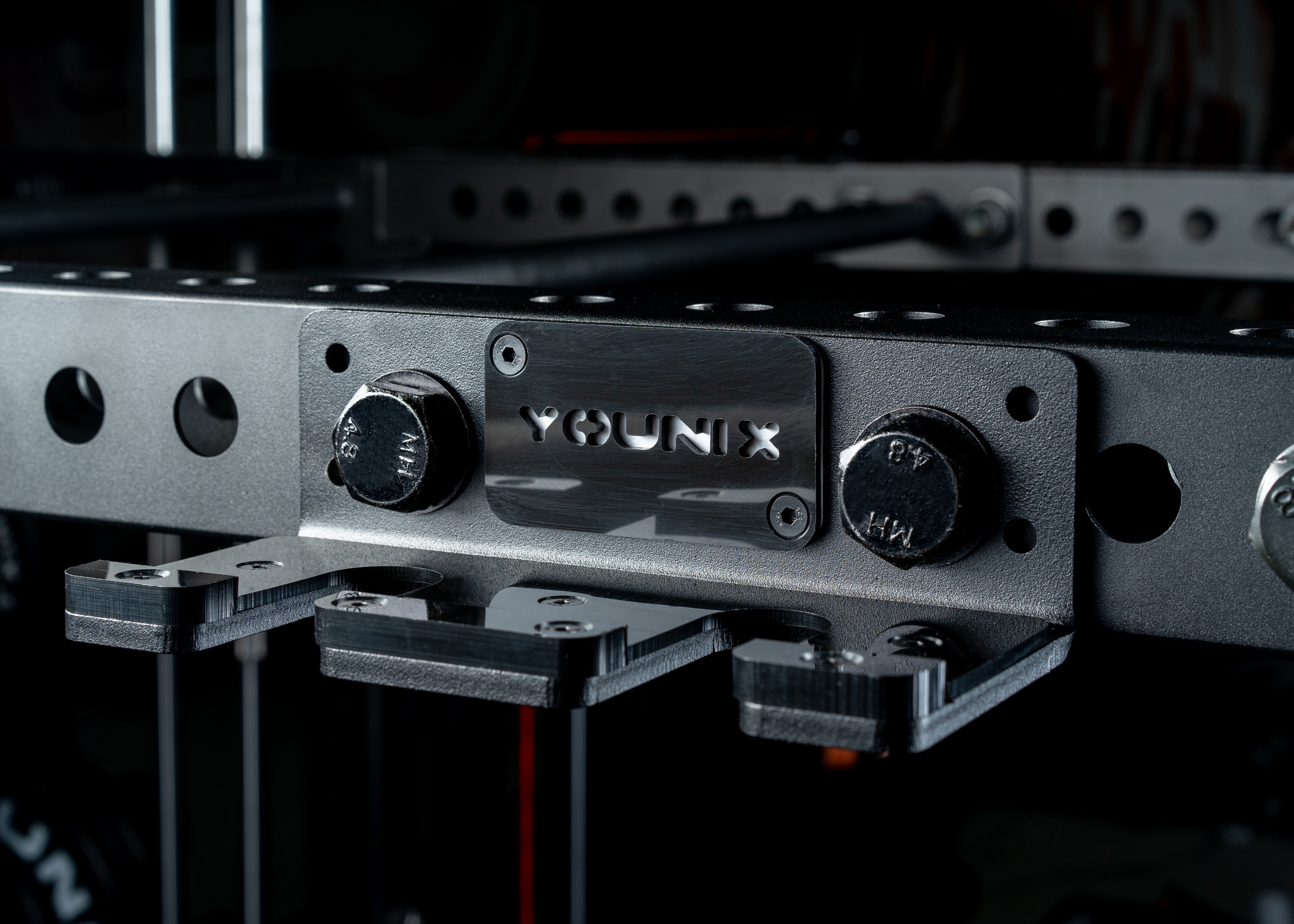 The Vertical 2 Bar Hanger can be mounted on all Younix Rigs, Racks, and the banner of the Cable Rack. It includes all necessary hardware for quick installation and fits both standard Olympic barbells. Not recommended for specialty bars. Available in single or double-bar versions to match your space.