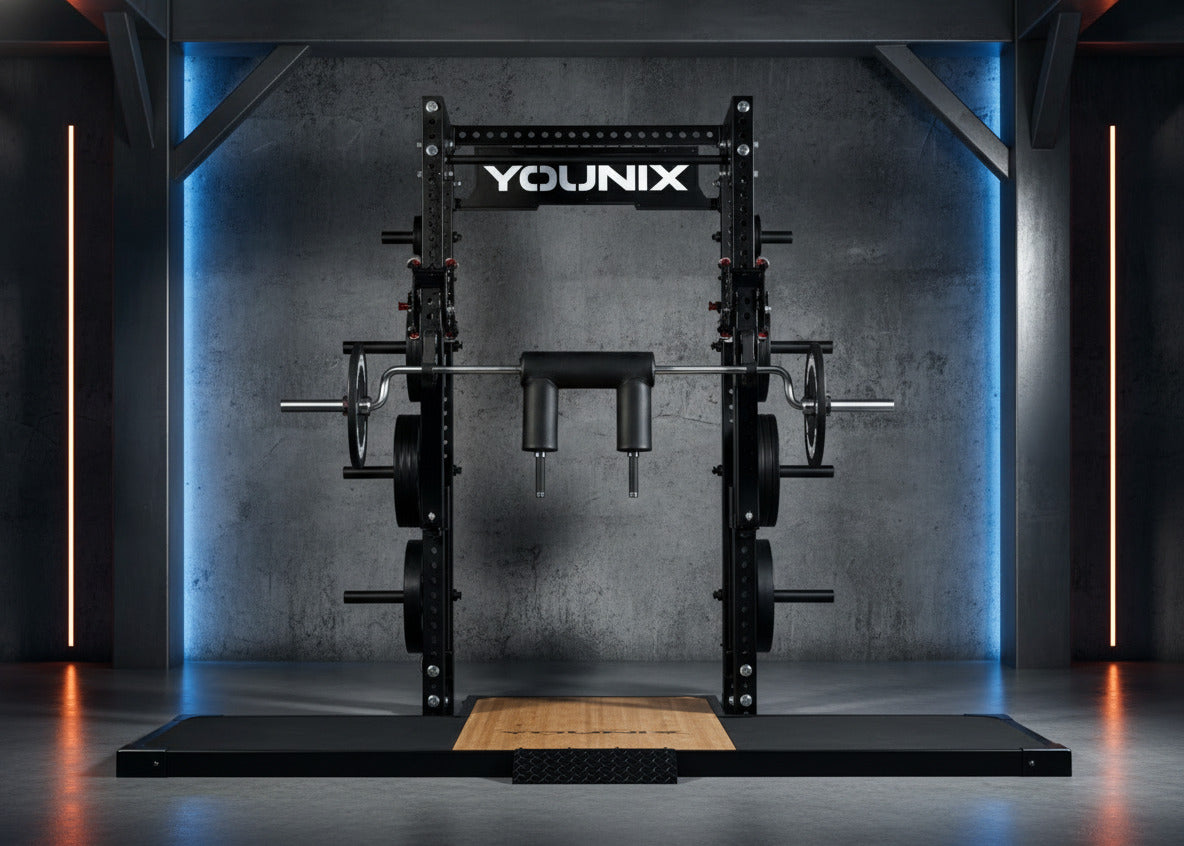 The Younix Safety Squat Bar offers a distinctive weight distribution, targeting the anterior chain. Positioned between the front squat and high-bar back squat, it enhances power output training, making it a safer choice for intense squat progressions and maximum load lifts. Experience an increase in your maximum working weight compared to traditional back squats.