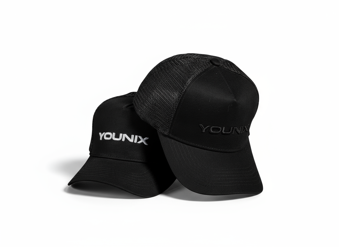 Il Trucker Cap presenta una parte frontale strutturata che mantiene la forma e dona al cappellino un carattere deciso e sicuro. Il logo Younix ricamato in 3D aggiunge profondità e presenza, mentre le colorazioni minimal — nero su nero o nero su bianco — offrono uno stile pulito e versatile, adatto a qualsiasi contesto.
