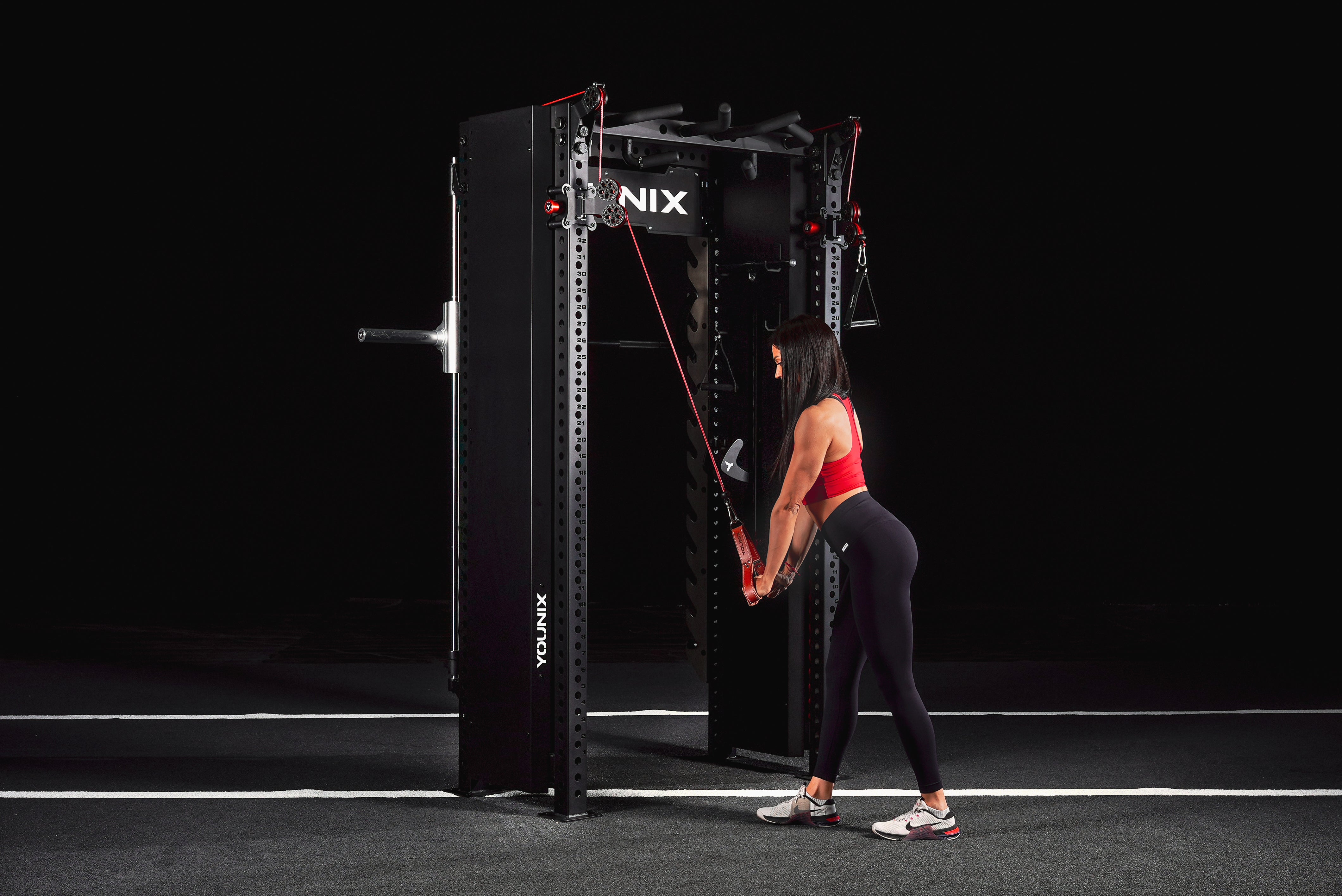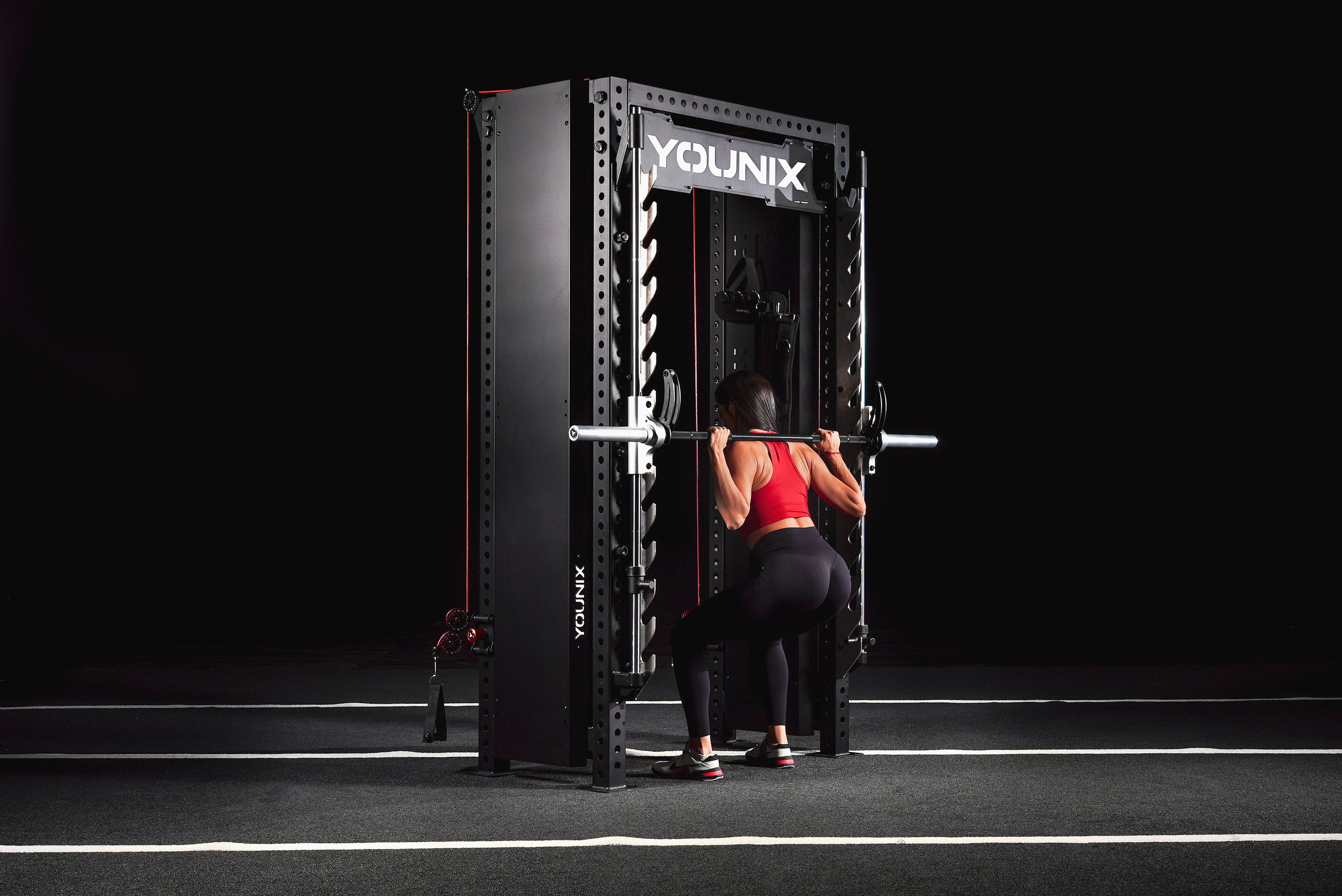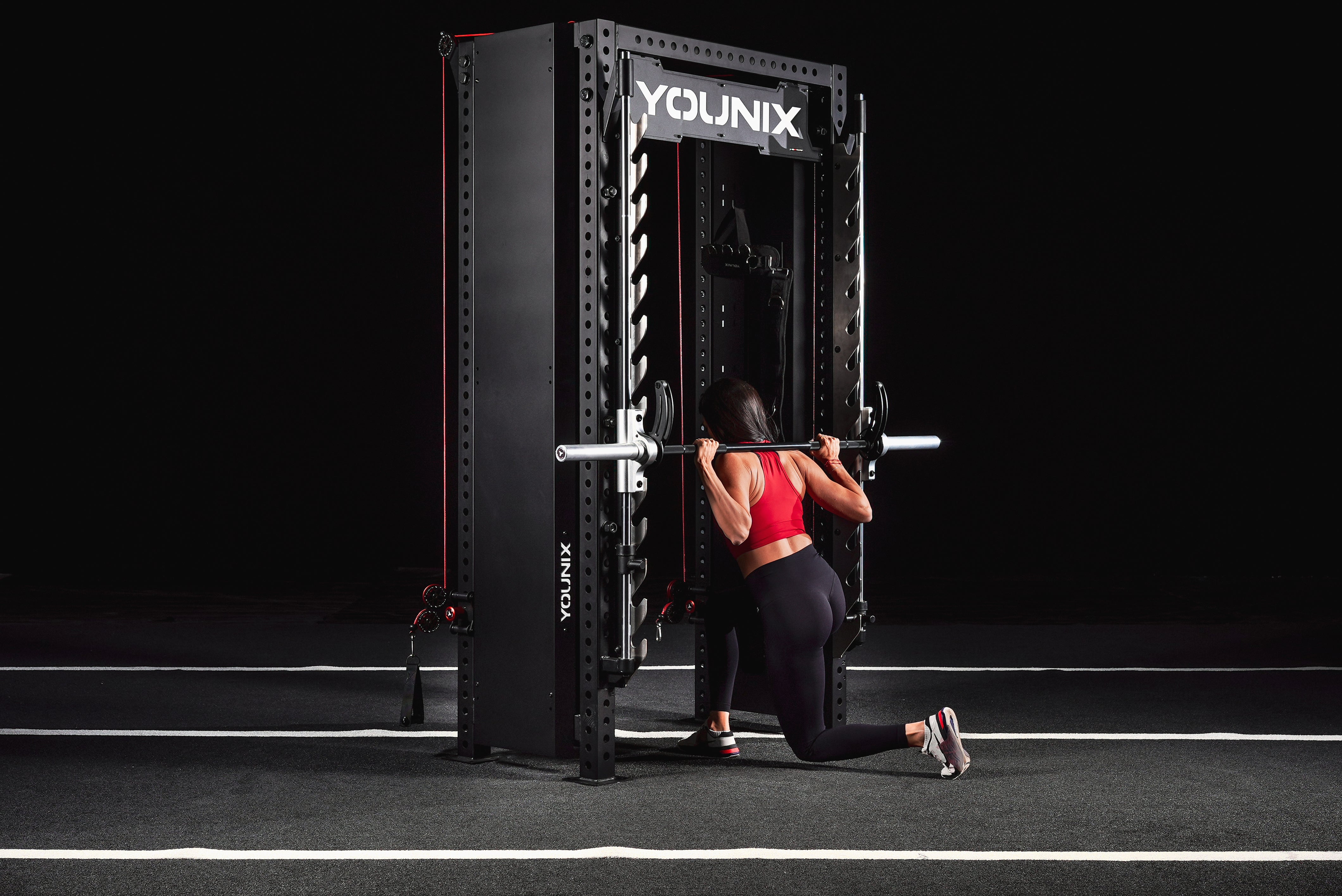 Progettata appositamente per aiutarti a eseguire i tuoi esercizi preferiti con il supporto aggiuntivo di un sistema di ringhiere. La versatilità è fondamentale e la Younix Smith Machine non delude. Apre un mondo di opzioni di allenamento, dalle distensioni dietro la nuca agli squat bulgari.