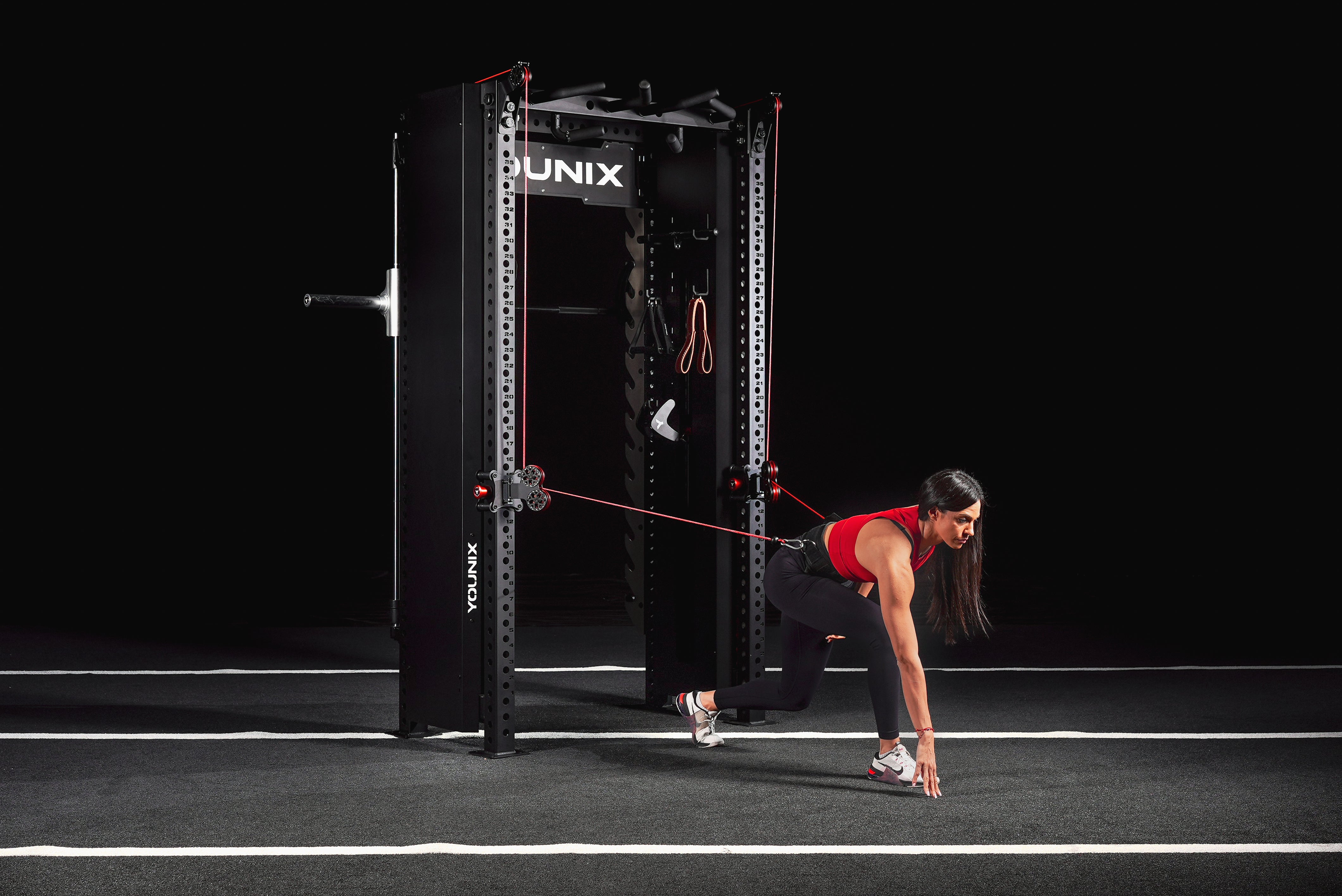 Grazie alla biomeccanica avanzata, il Cable Rack 2.0 consente di eseguire esercizi esplosivi focalizzati sull'ottimizzazione della forza e sull'aumento di potenza e velocità. Ogni pacco pesi è dotato di un doppio supporto per elastici. Più si sposta la maniglia, maggiore è la tensione creata dall'elastico. Questo è chiamato resistenza ascendente e consente alla velocità di cambiare e accelerare esattamente come il corpo lavora naturalmente per aumentare la potenza.