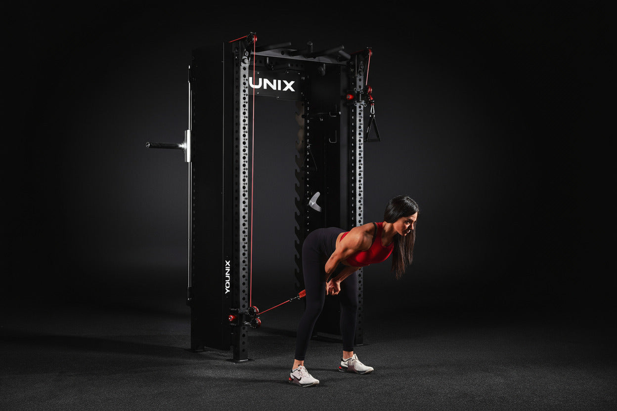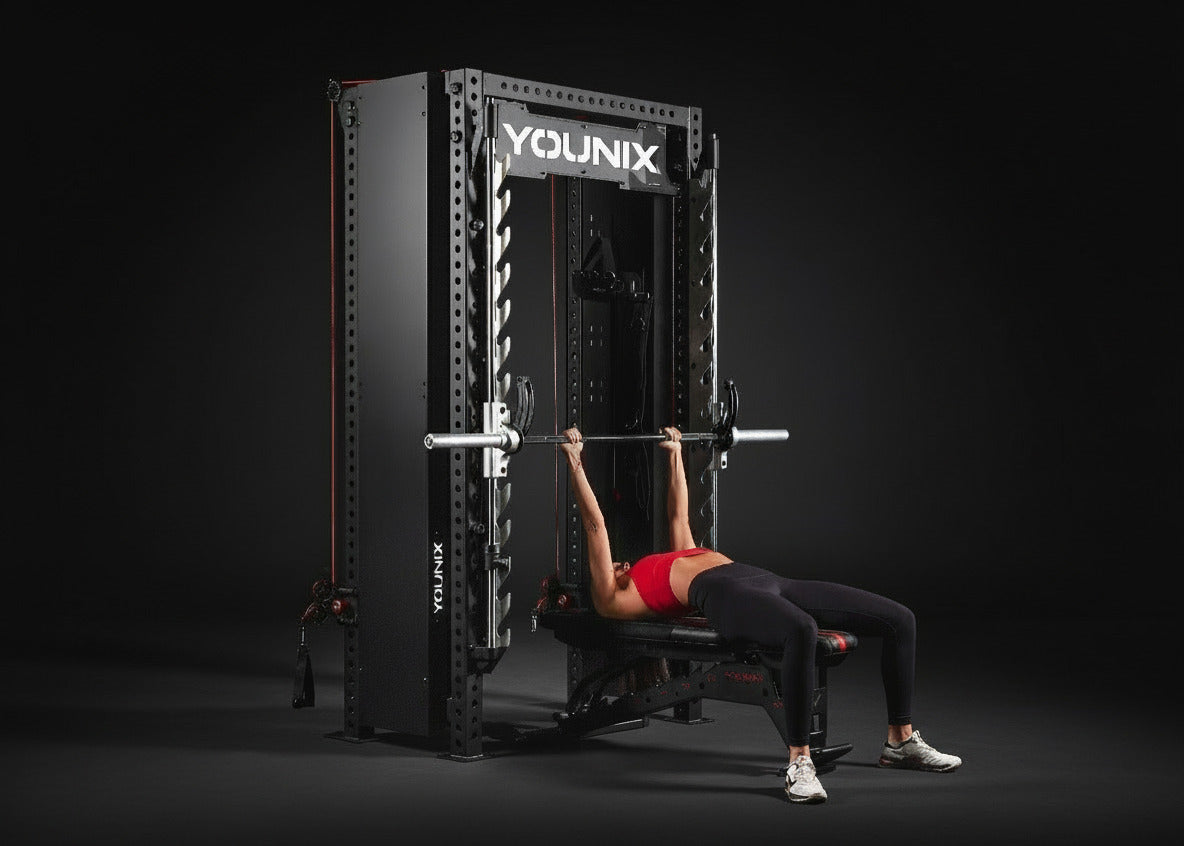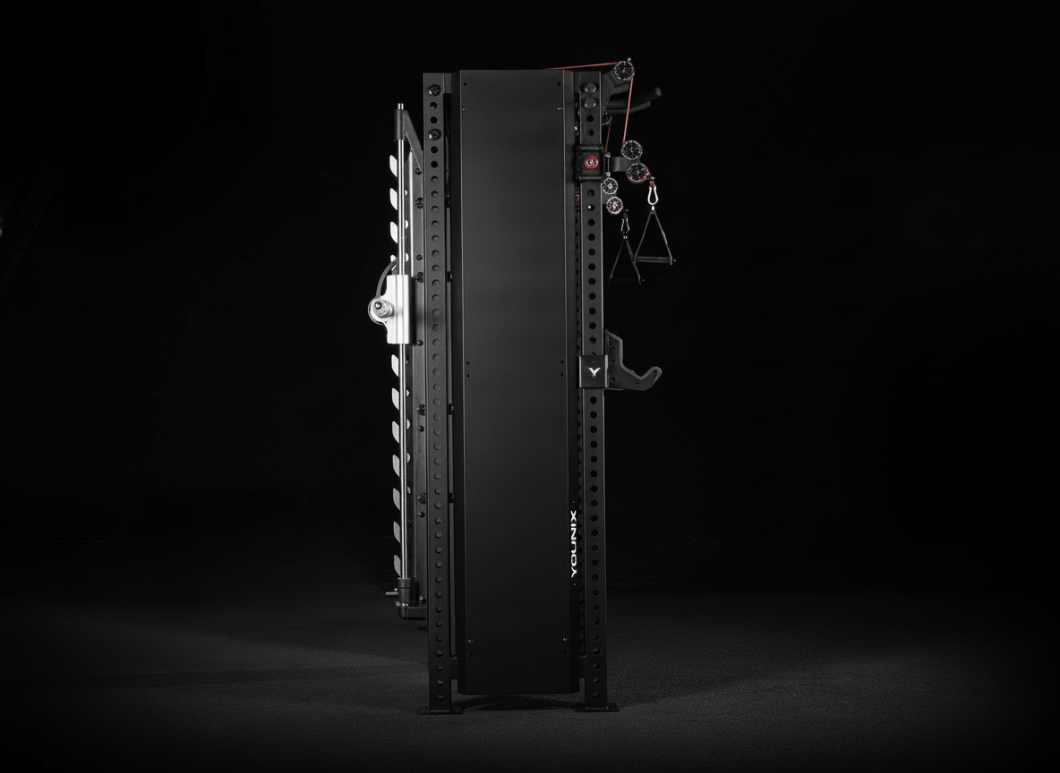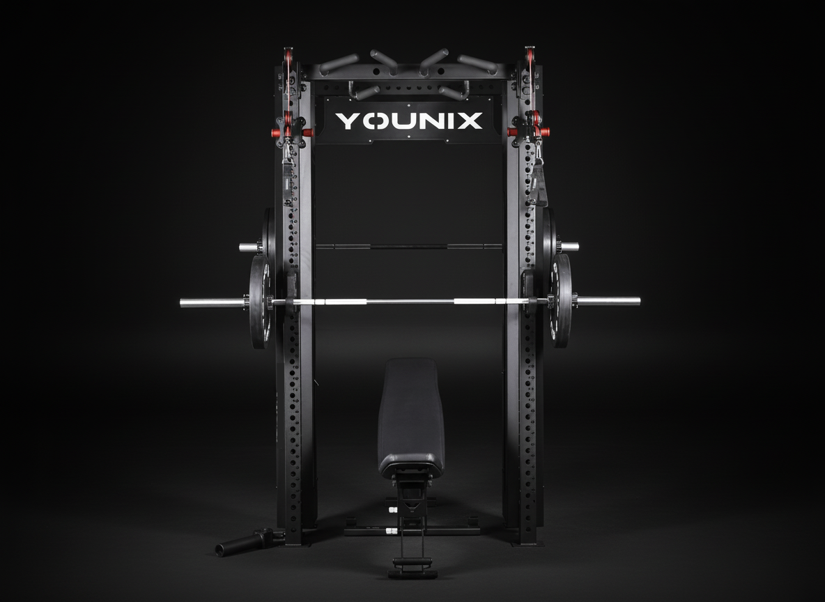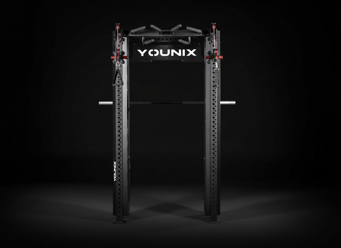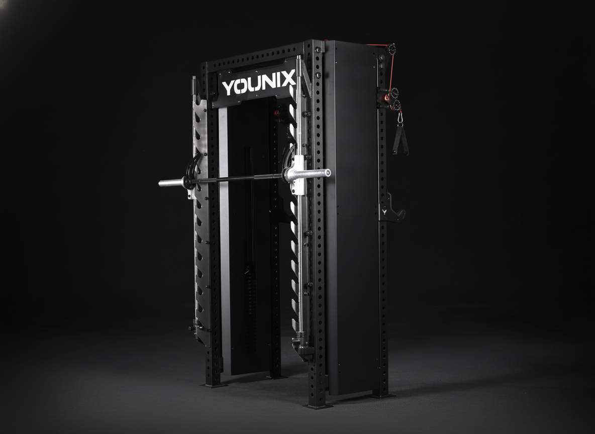 Progettata appositamente per aiutarti a eseguire i tuoi esercizi preferiti con il supporto aggiuntivo di un sistema di ringhiere. La versatilità è fondamentale e la Younix Smith Machine non delude. Apre un mondo di opzioni di allenamento, dalle distensioni dietro la nuca agli squat bulgari.