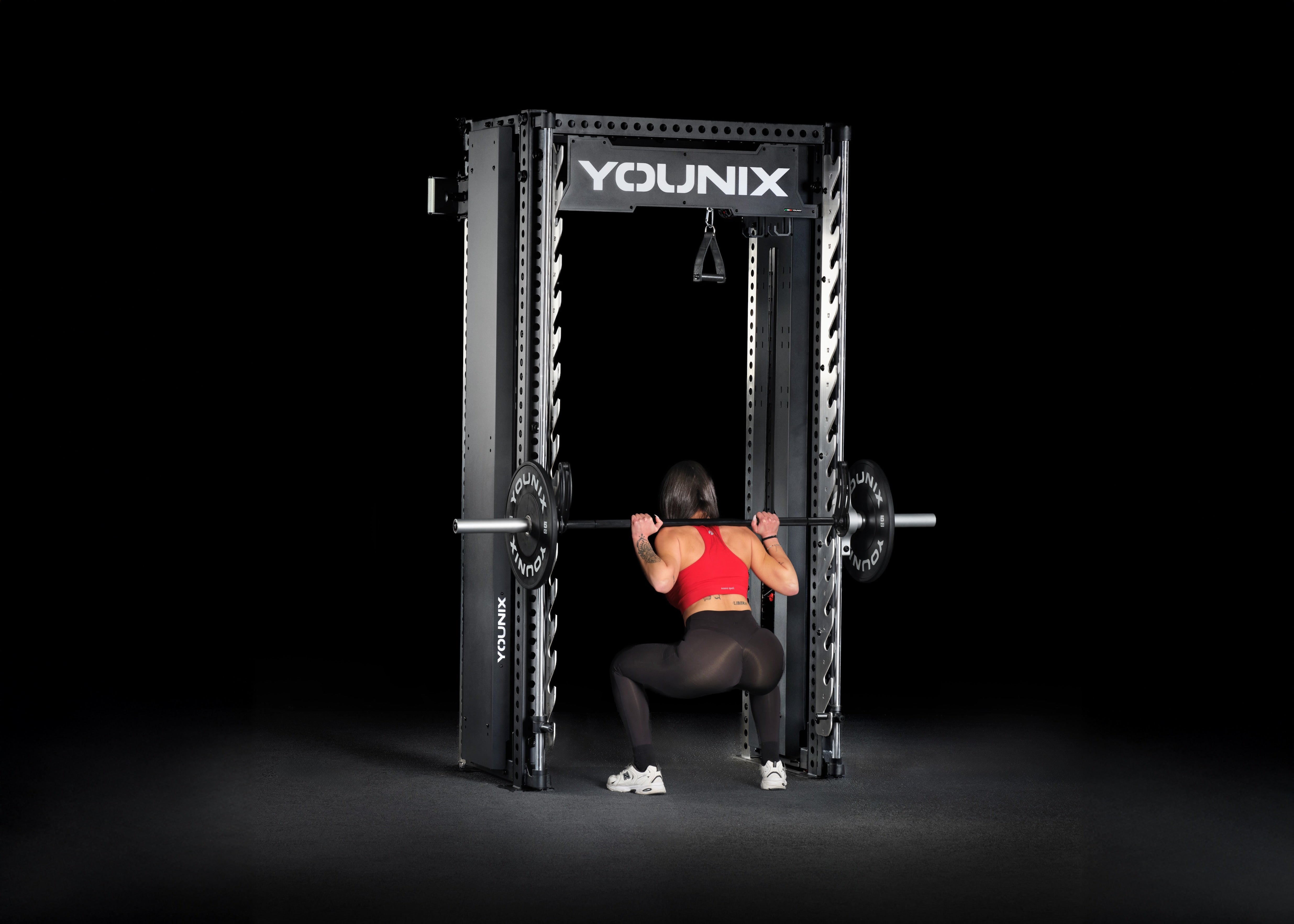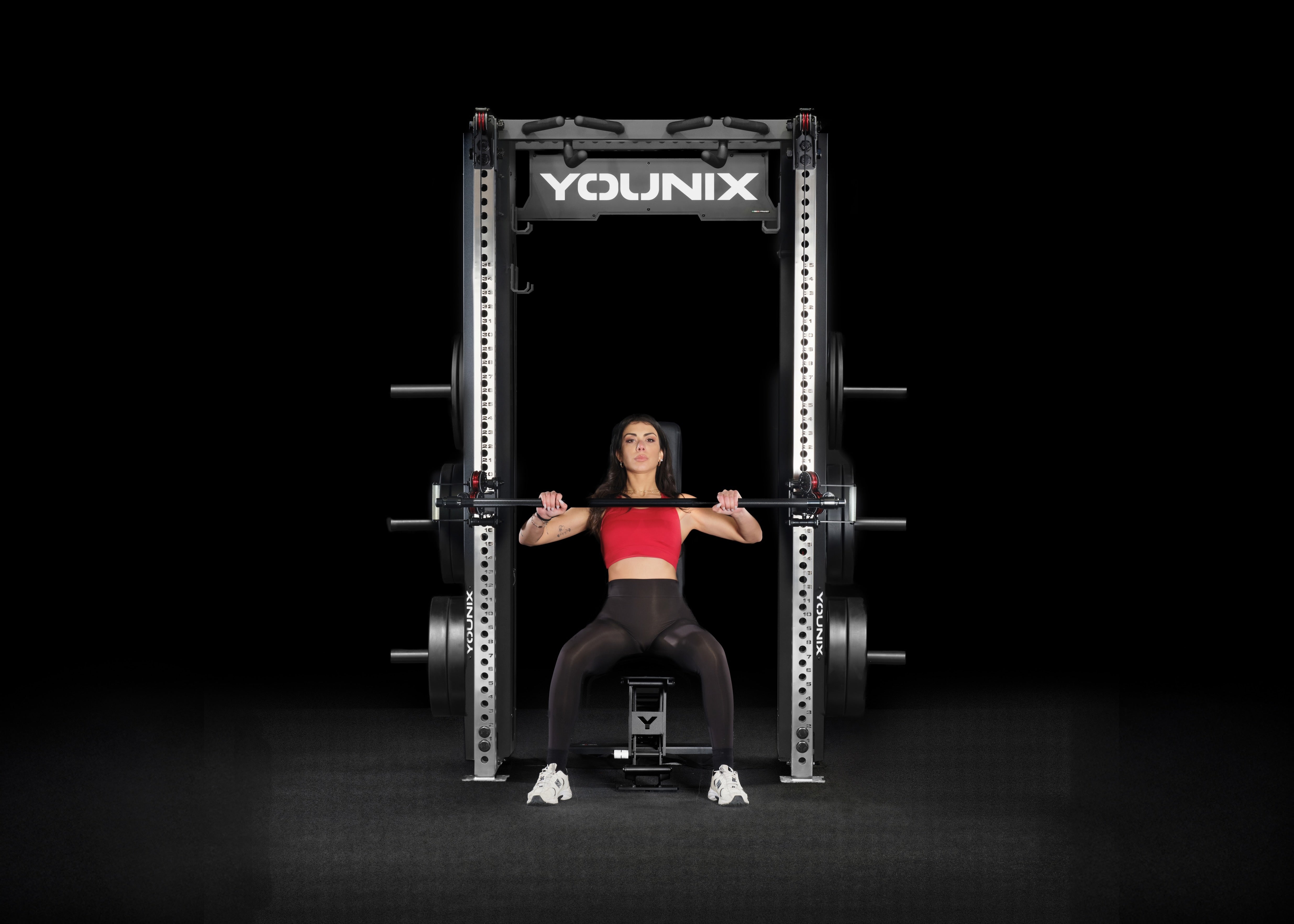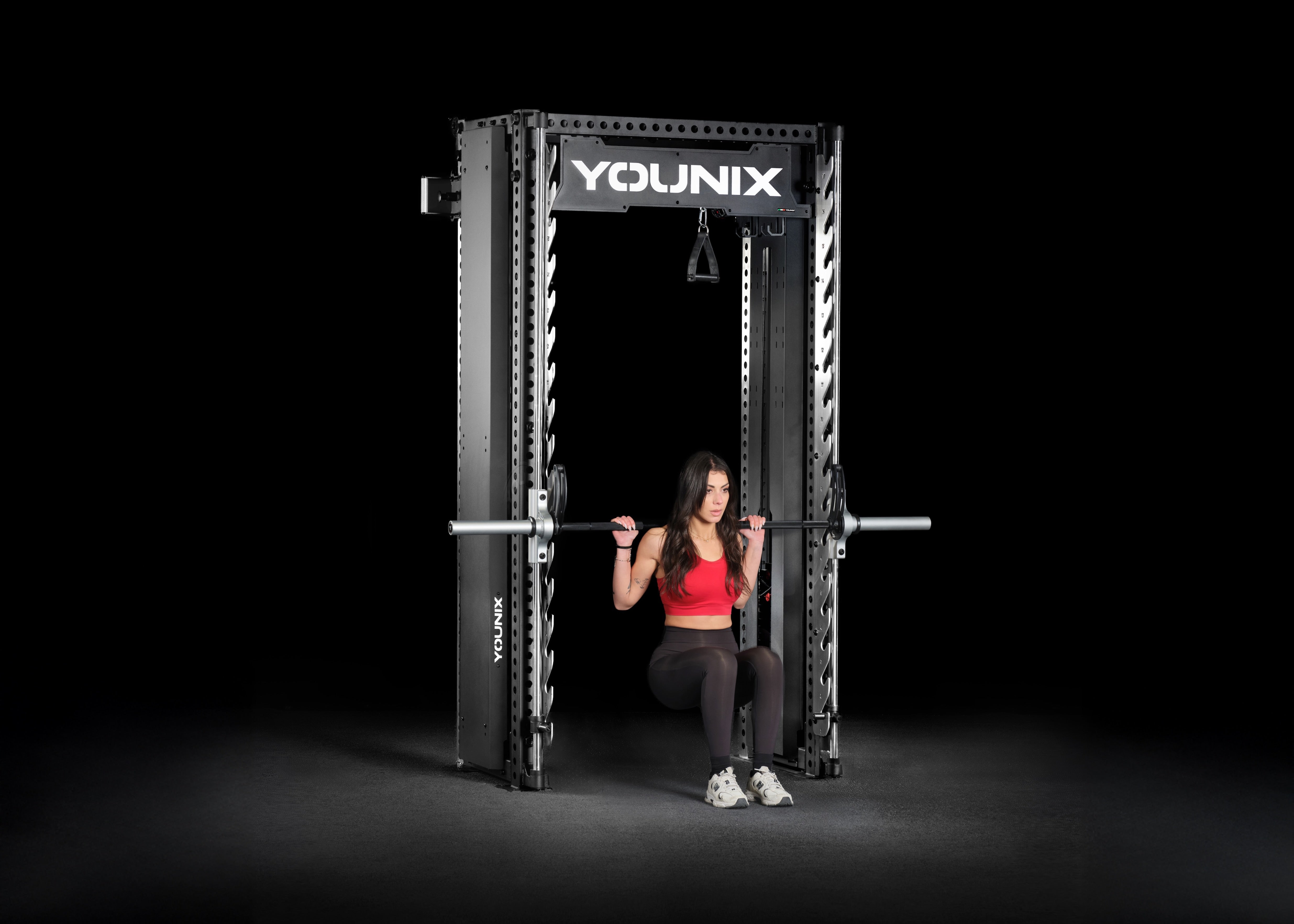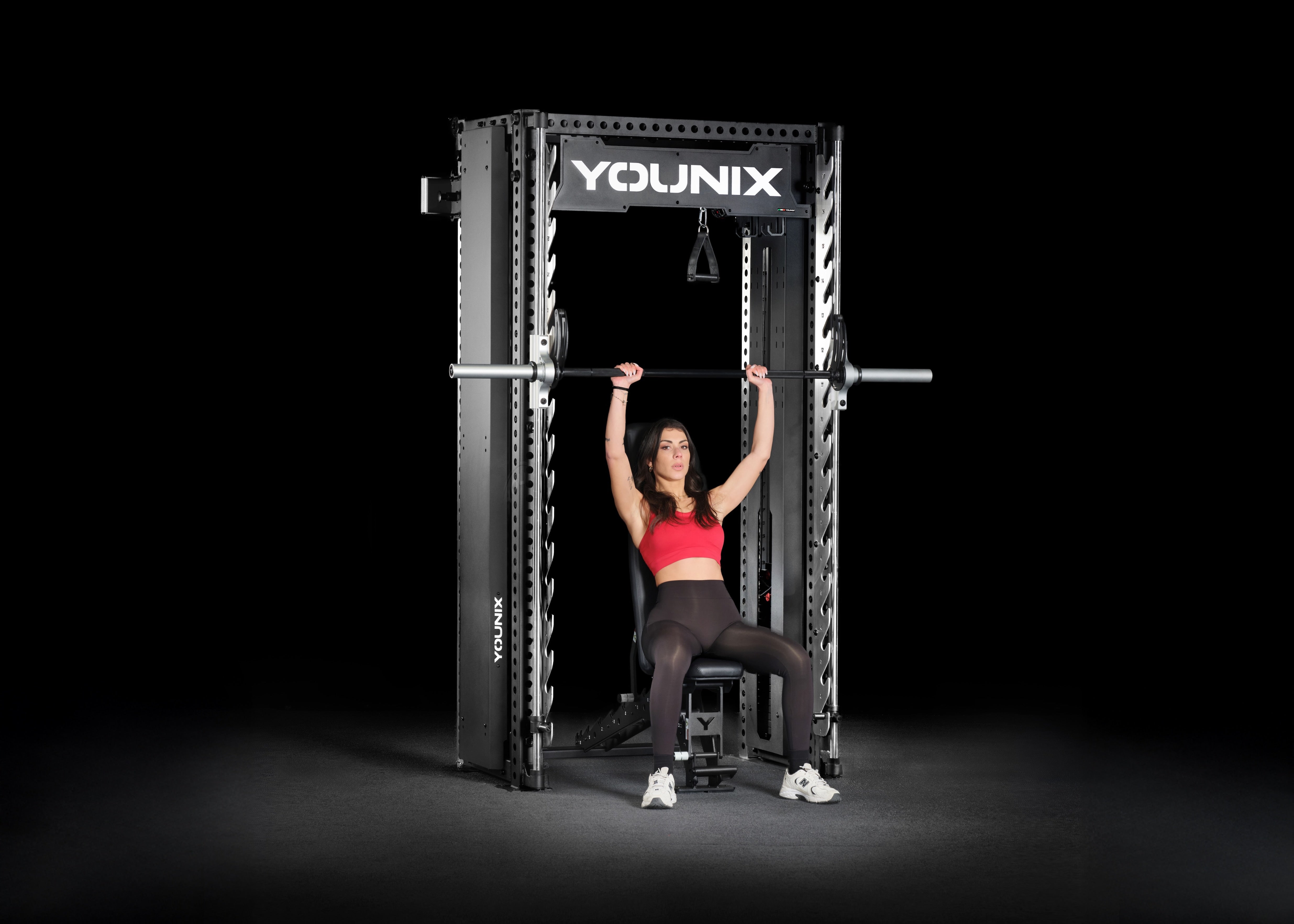 Il sistema a guida ti aiuta a eseguire esercizi in sicurezza, con controllo e fluidità. Dalle spinte sopra la testa agli squat bulgari, dalla panca piana agli affondi: la versatilità della Smith Machine Younix amplia la tua routine in modo efficace e naturale.