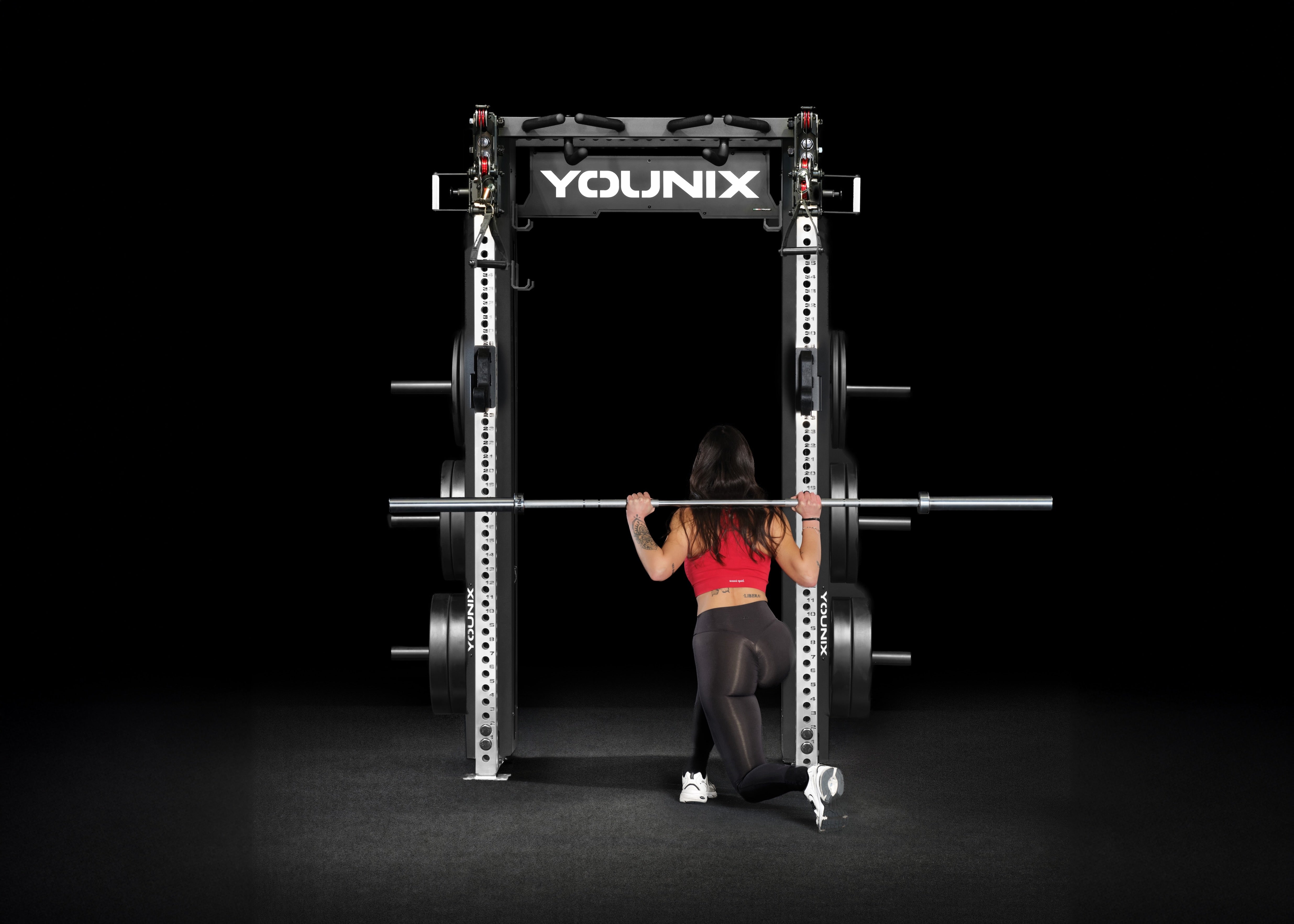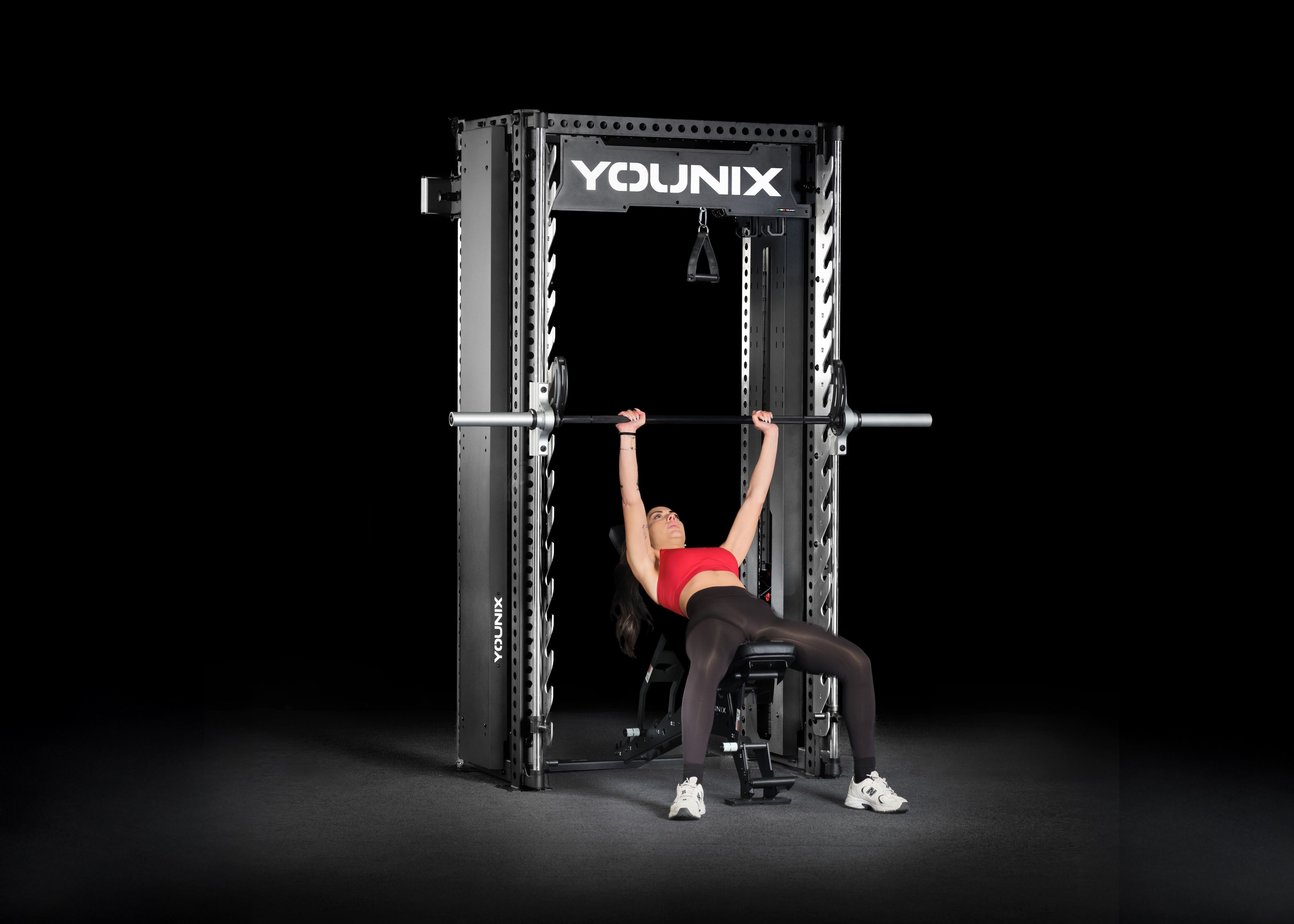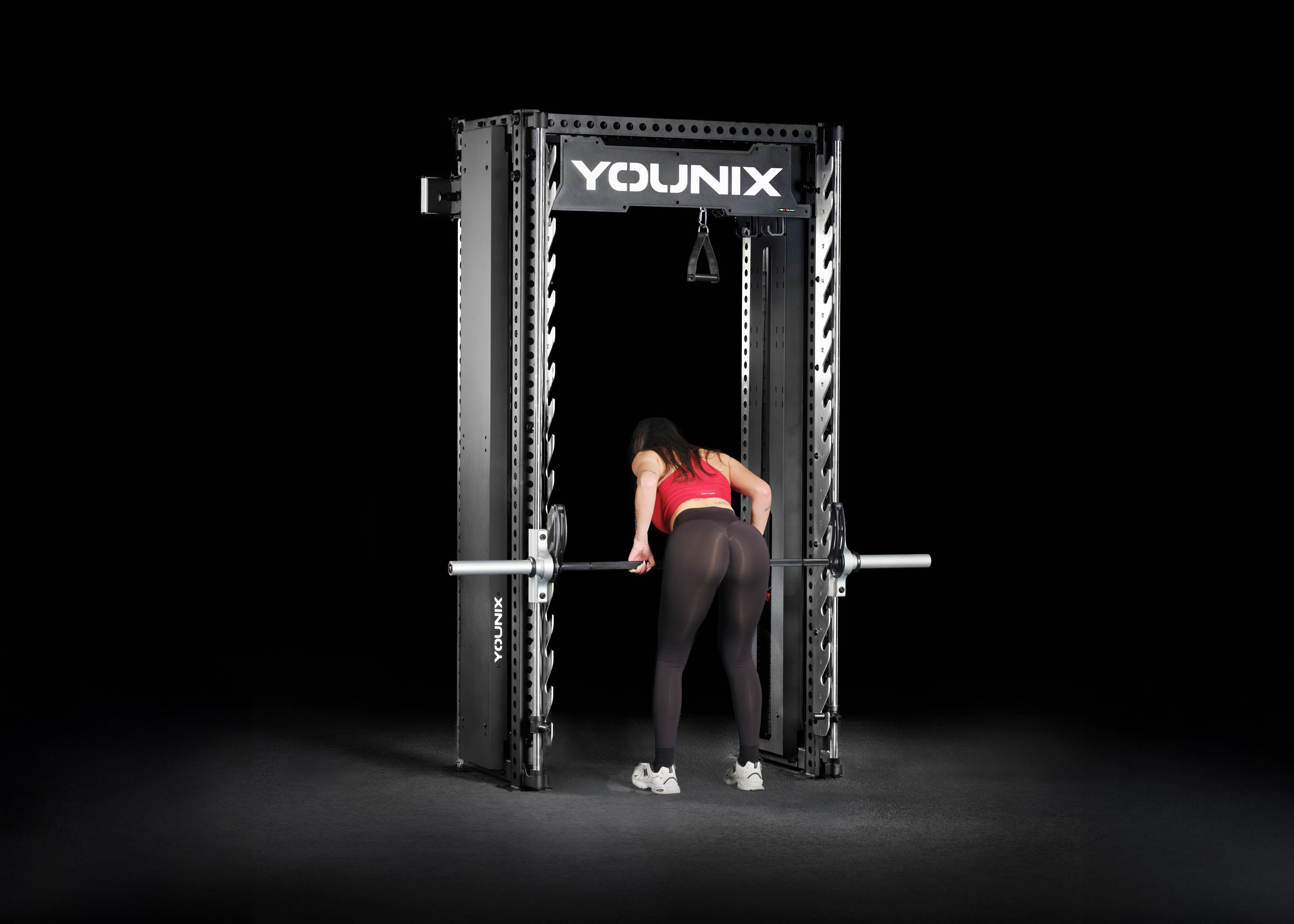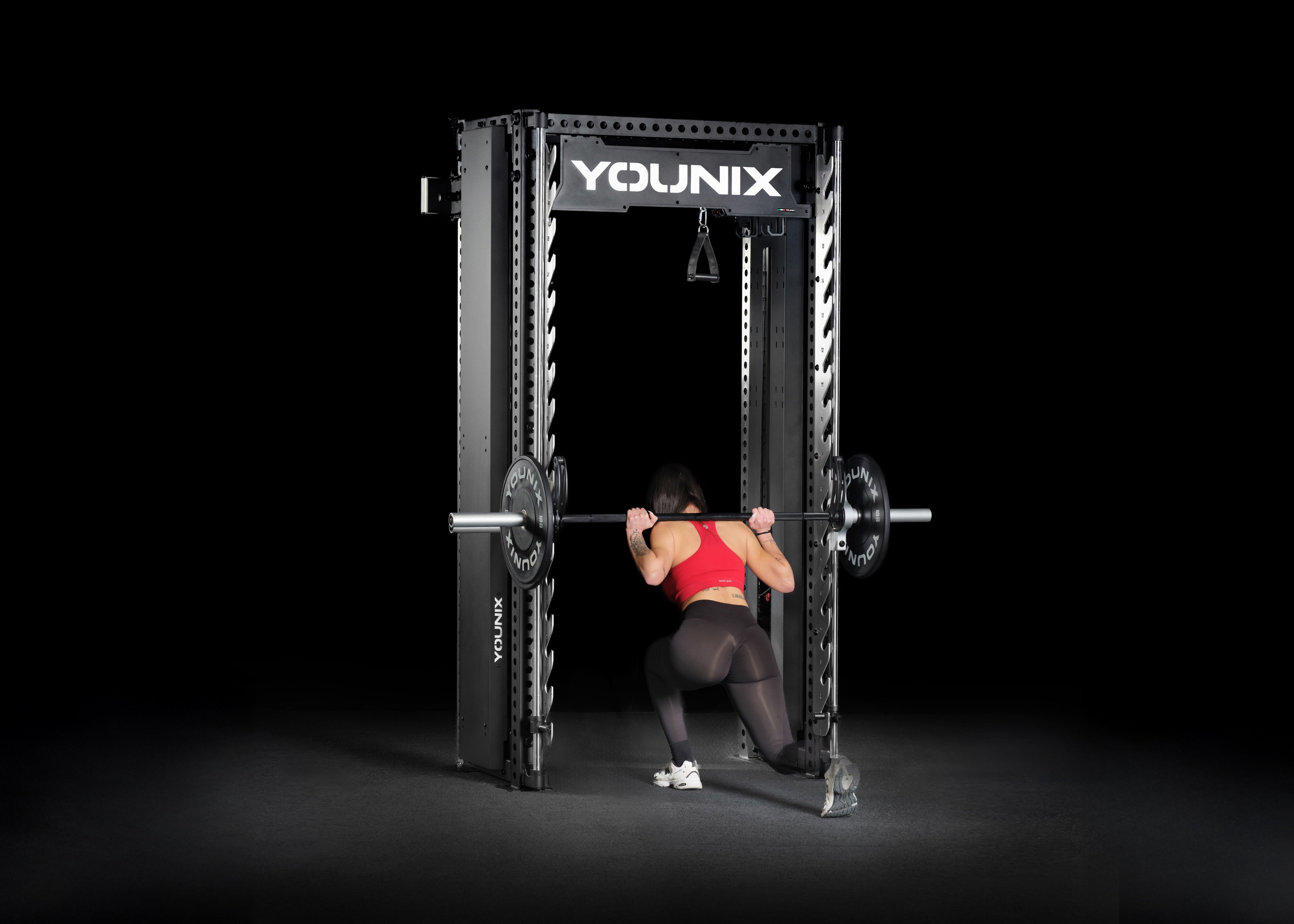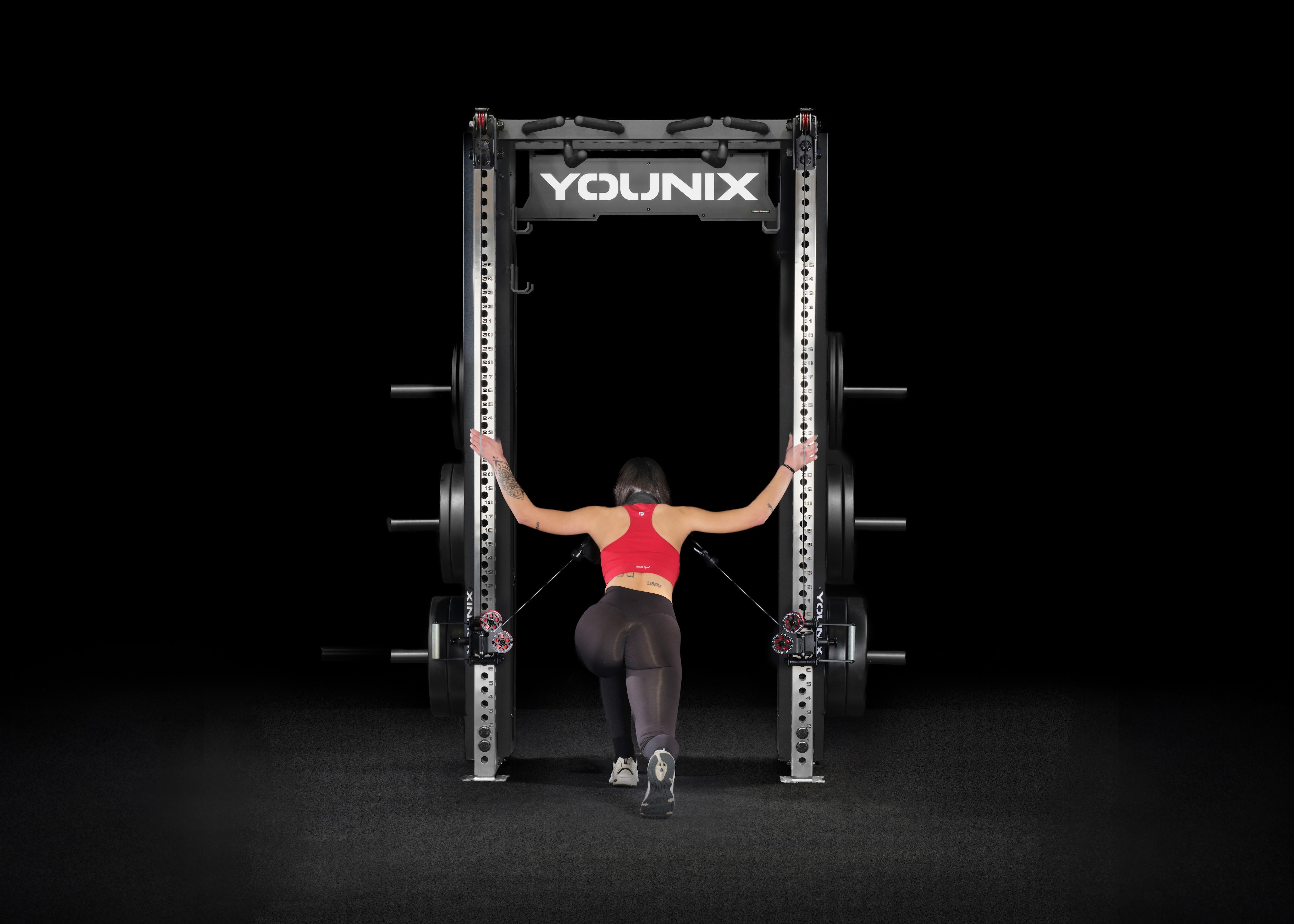 Il sistema a guida ti aiuta a eseguire esercizi in sicurezza, con controllo e fluidità. Dalle spinte sopra la testa agli squat bulgari, dalla panca piana agli affondi: la versatilità della Smith Machine Younix amplia la tua routine in modo efficace e naturale.
