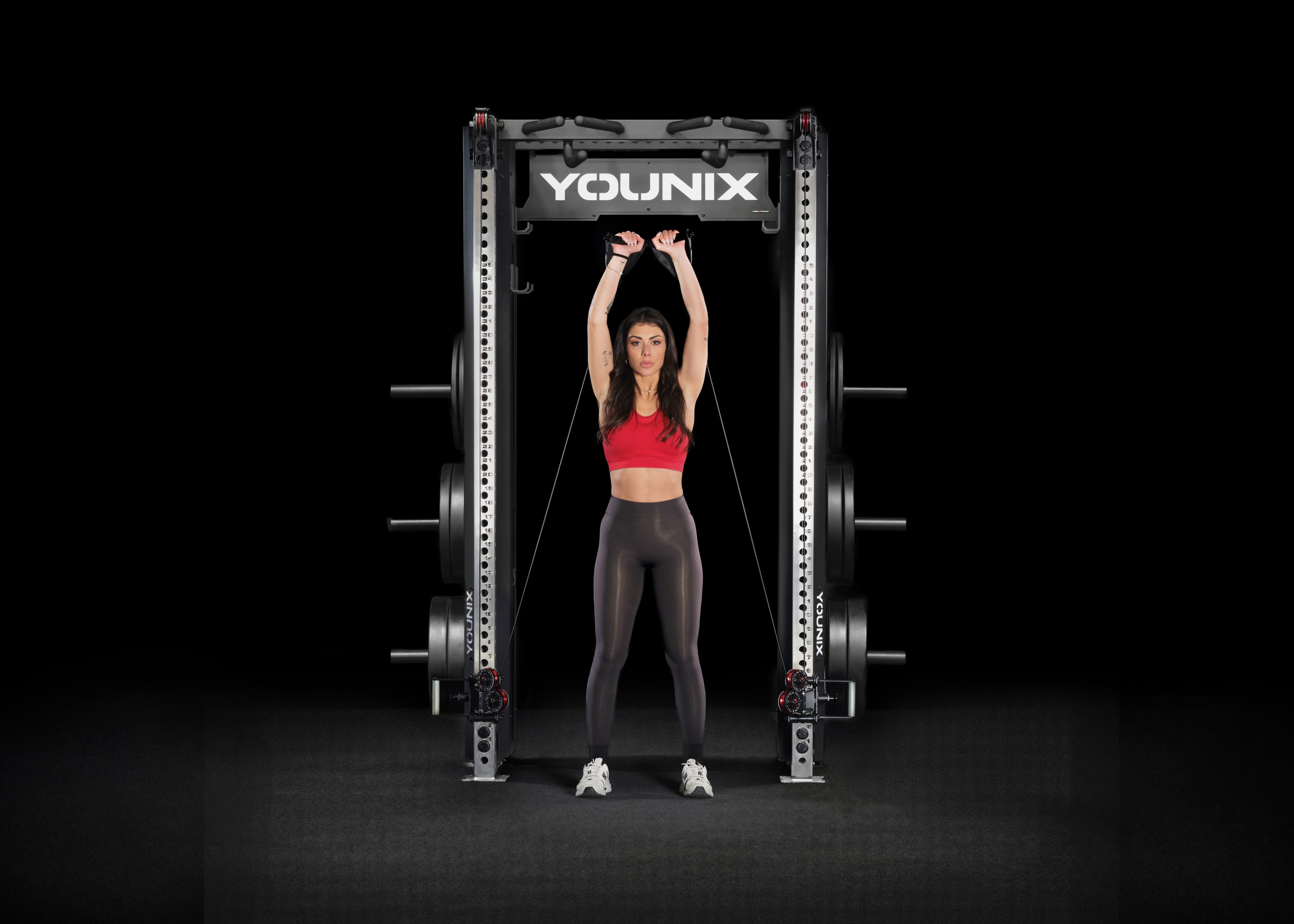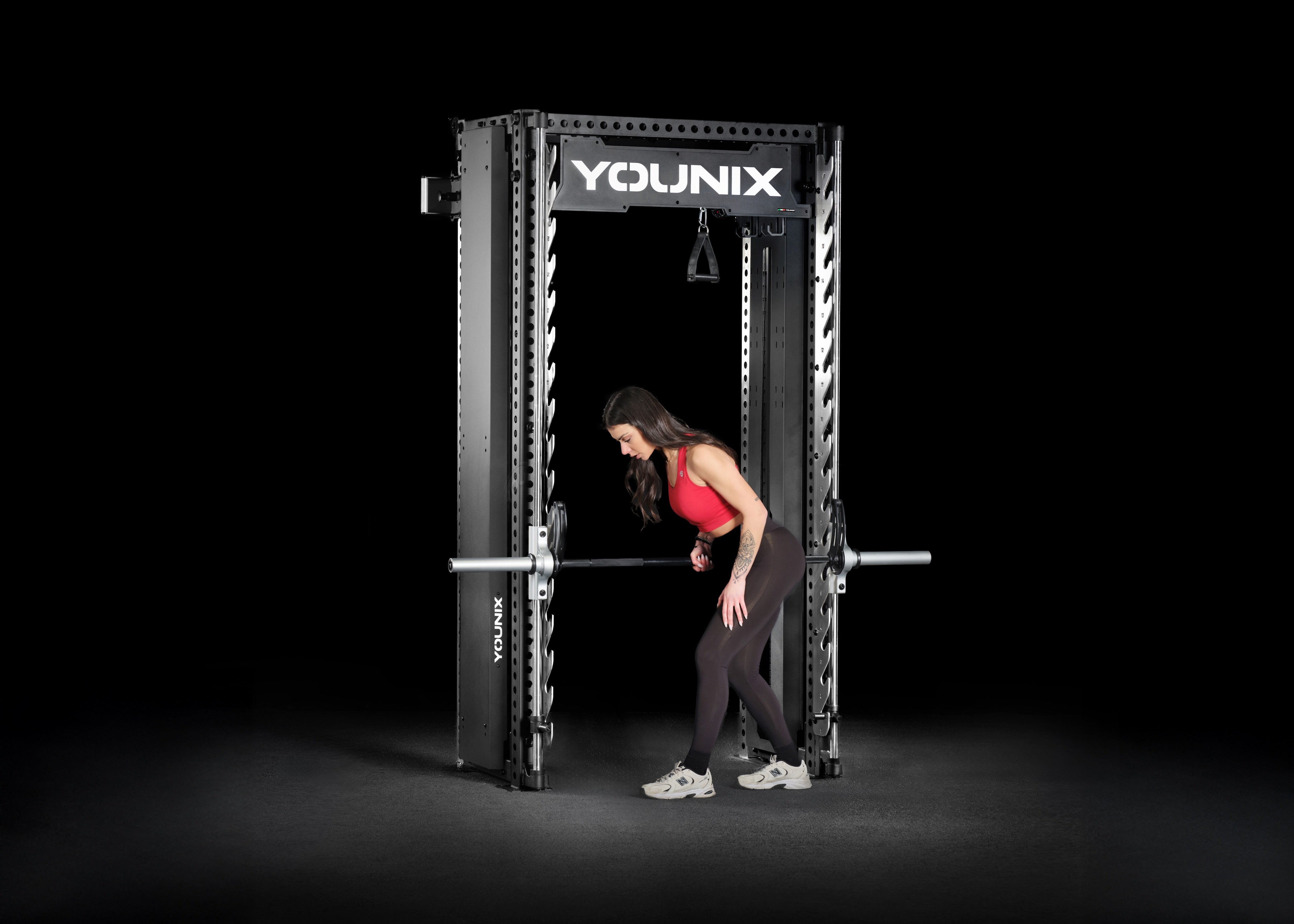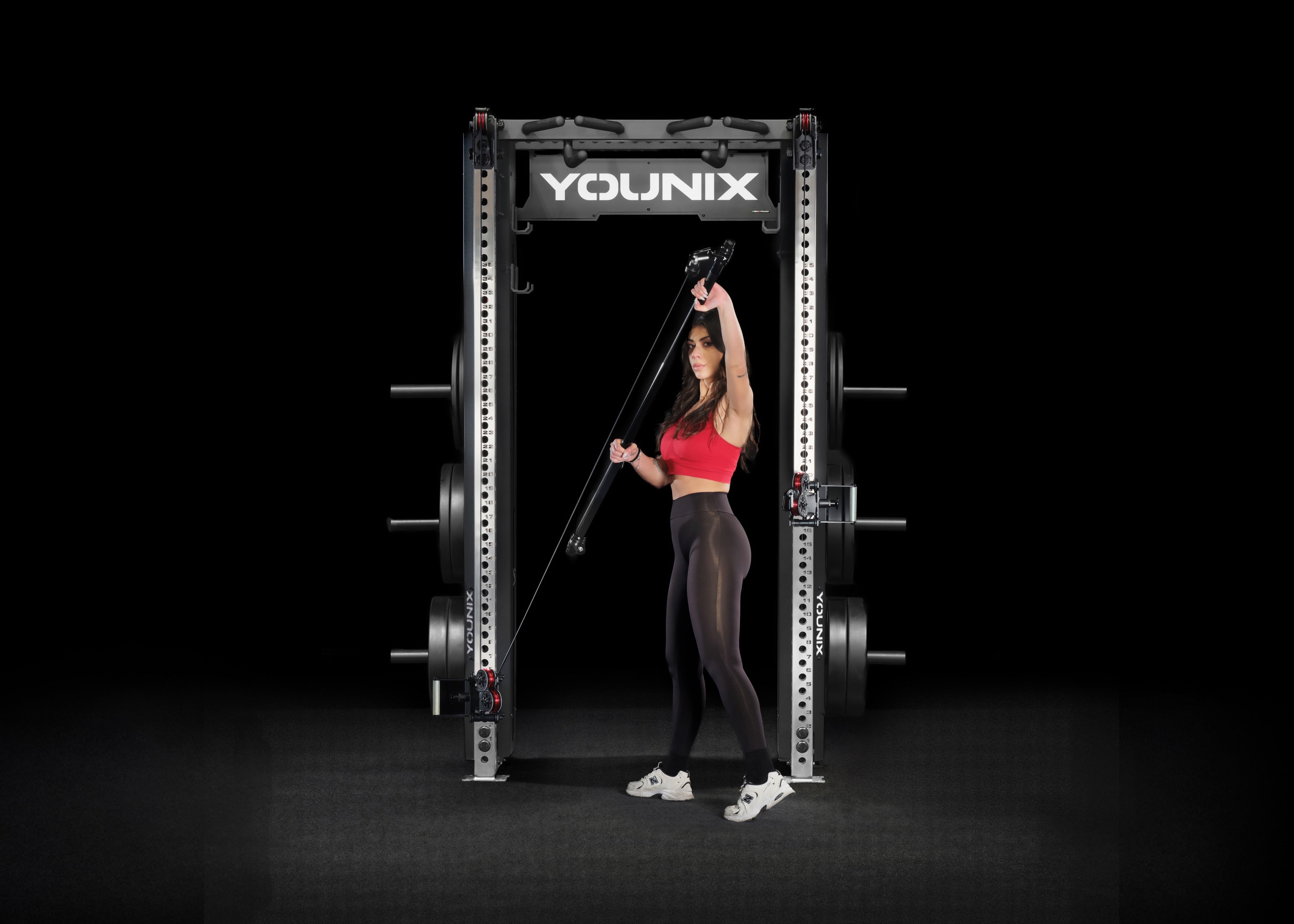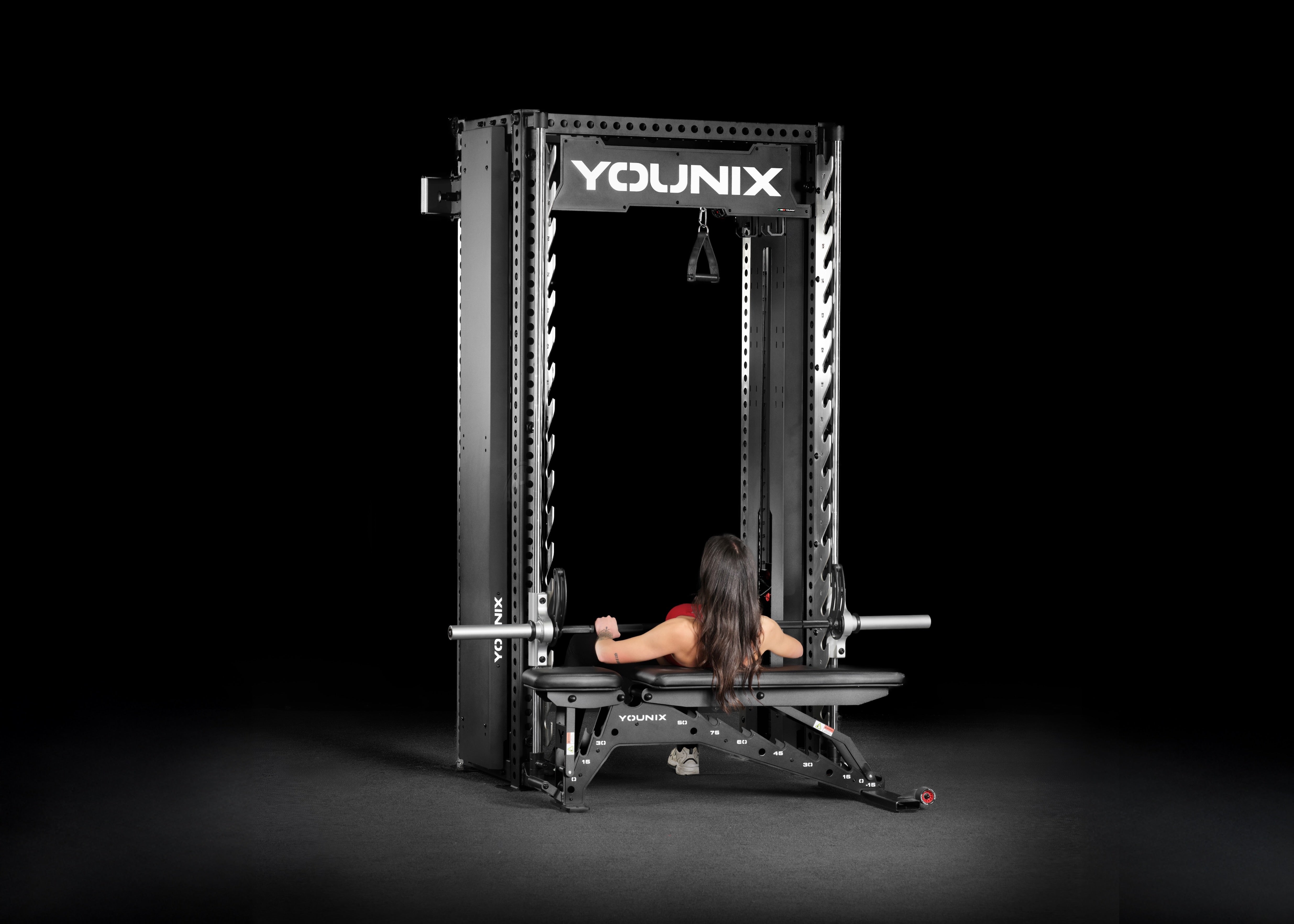 Il sistema a guida ti aiuta a eseguire esercizi in sicurezza, con controllo e fluidità. Dalle spinte sopra la testa agli squat bulgari, dalla panca piana agli affondi: la versatilità della Smith Machine Younix amplia la tua routine in modo efficace e naturale.