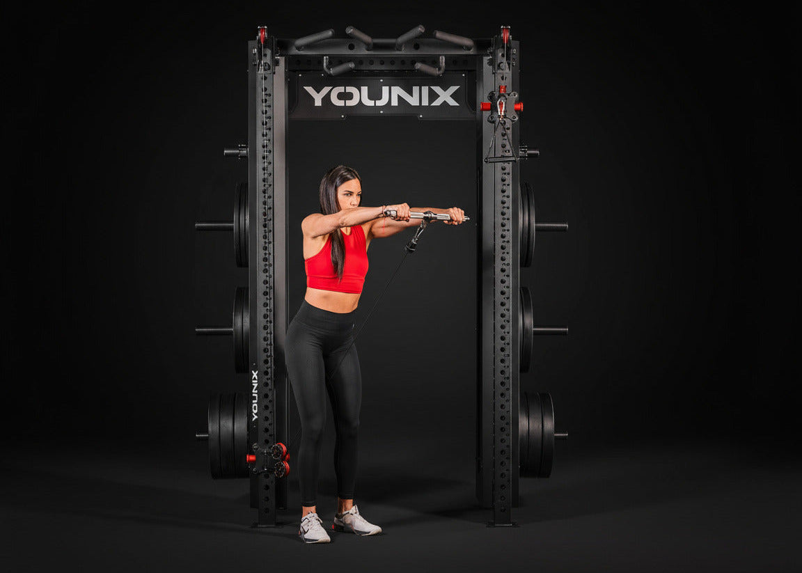 Abbiamo integrato il nostro sistema di carrucole nel nostro rack per offrirti infinite possibilità di allenamento. Esegui in sicurezza squat, varianti di press, trazioni, esercizi ai cavi illimitati con diversi accessori e molto altro, tutto su un'unica macchina. Il sistema di allenamento modulare, facilmente trasportabile e completo può essere personalizzato e adattato a quasi ogni ambiente o applicazione.