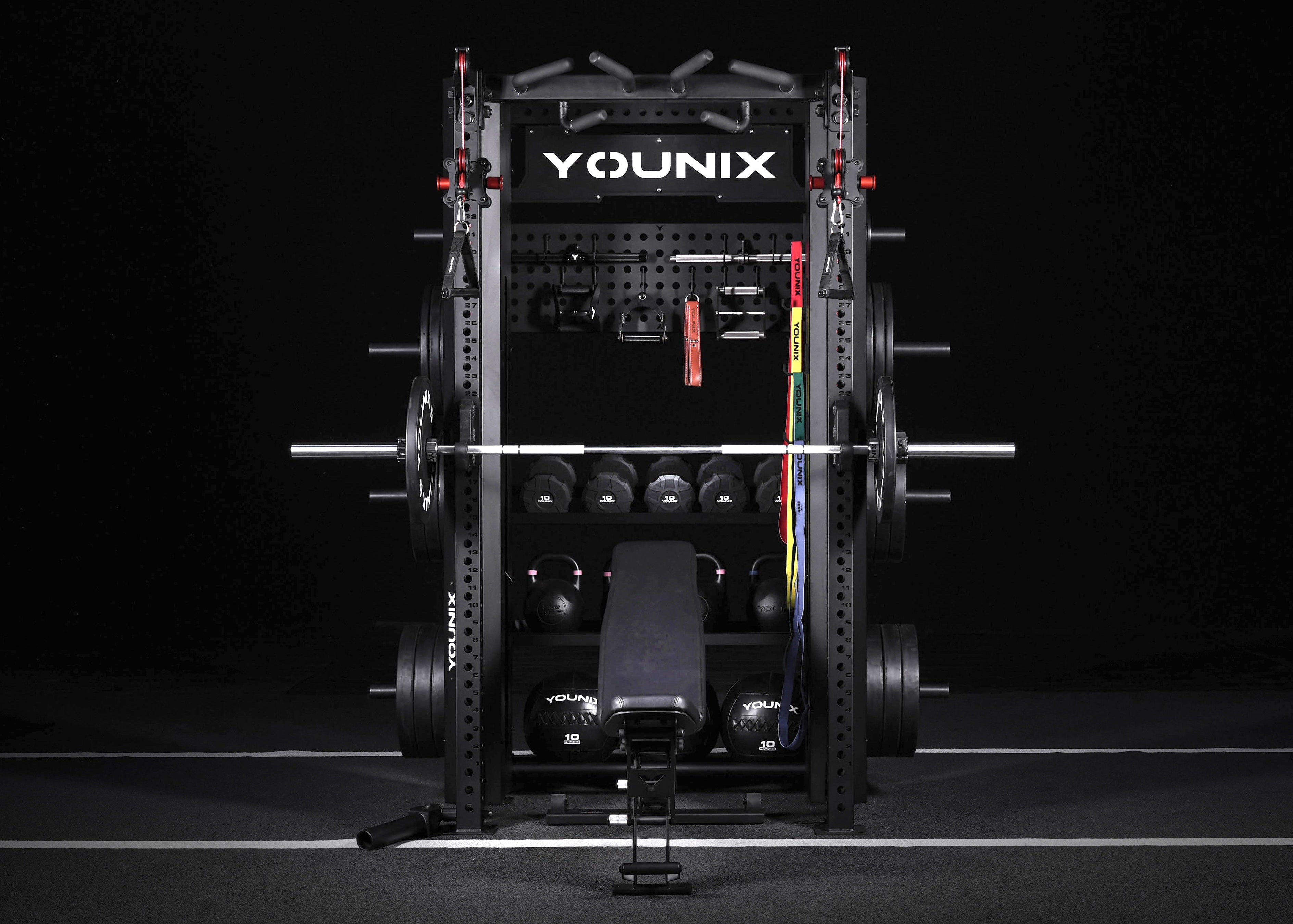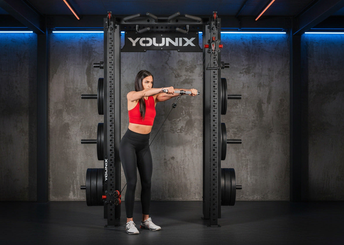 Abbiamo integrato il nostro sistema di carrucole nel nostro rack per offrirti infinite possibilità di allenamento. Esegui in sicurezza squat, varianti di press, trazioni, esercizi ai cavi illimitati con diversi accessori e molto altro, tutto su un'unica macchina. Il sistema di allenamento modulare, facilmente trasportabile e completo può essere personalizzato e adattato a quasi ogni ambiente o applicazione.