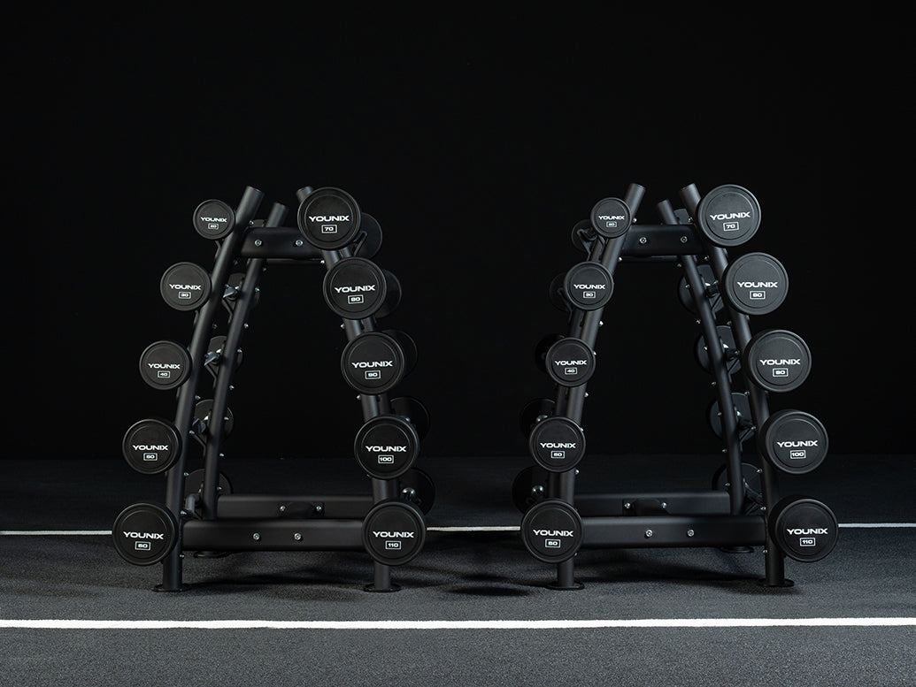 - LB Set Includes: 1x 20lb, 30lb, 40lb, 50lb, 60lb , 70lb, 80lb, 90lb, 100lb, 110lb and 1x Rack.
