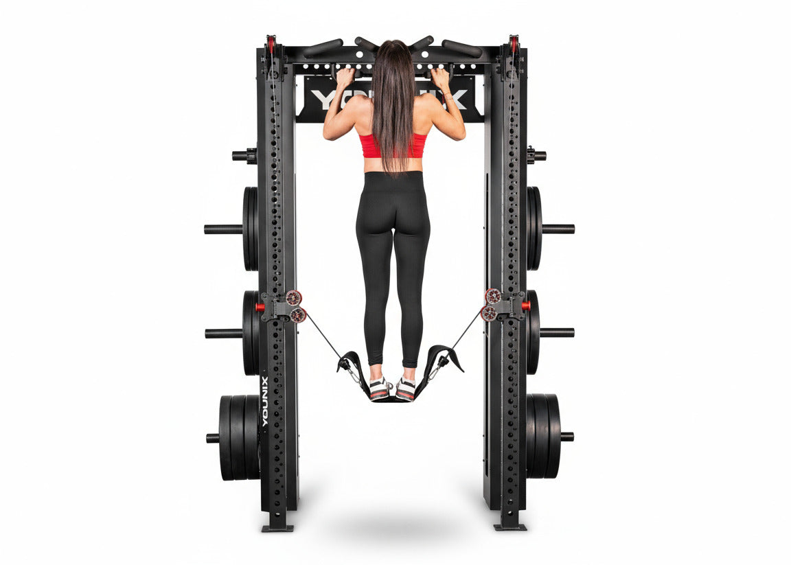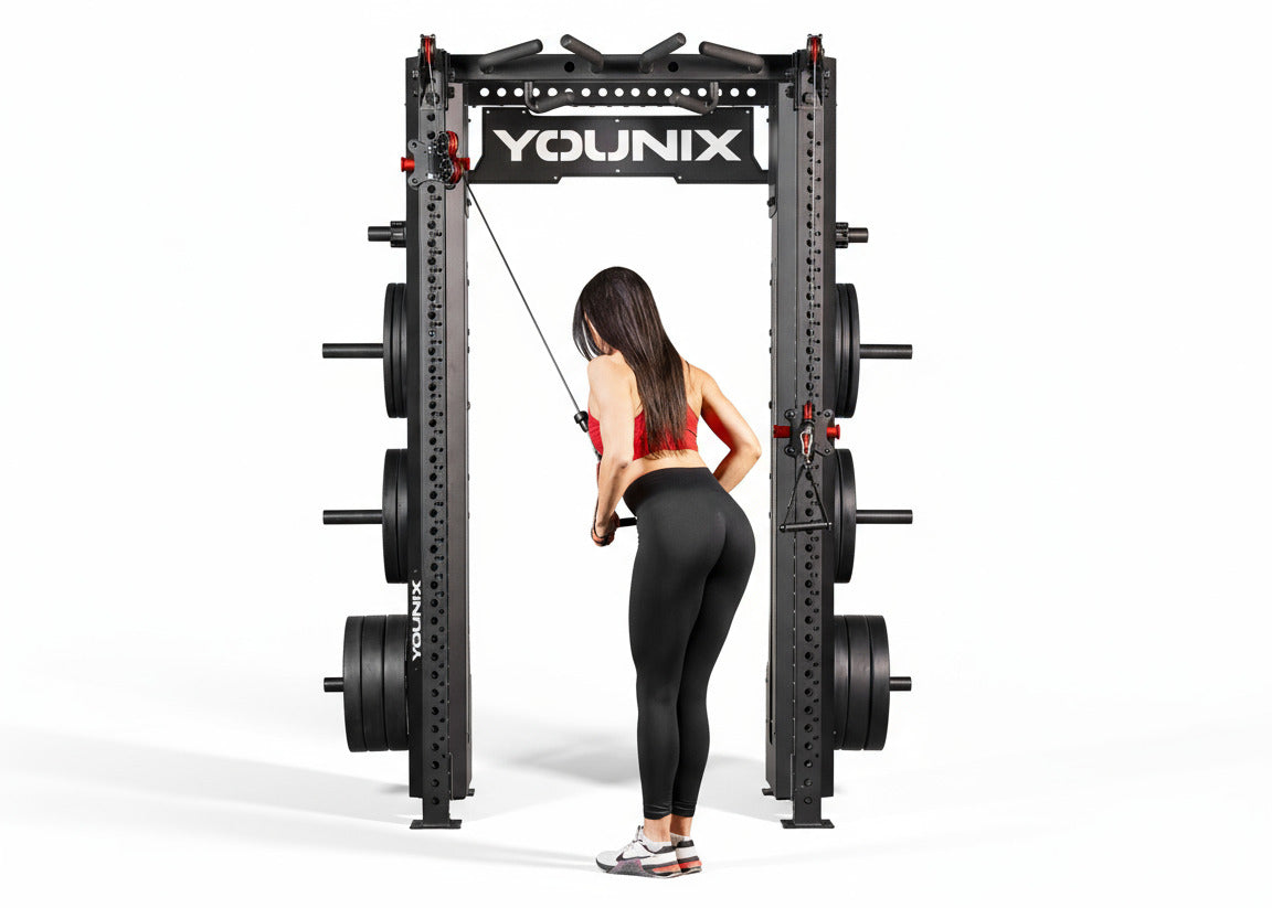 We integrated our pulley system into our rack to give you limitless training options. Safely perform squats, press variations, pull-ups, unlimited cable work with different attachments, and more, all on one machine. Modular, simply shippable, and all-inclusive training system can be customized and fit almost any room or application.